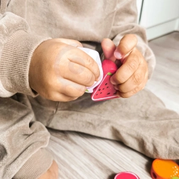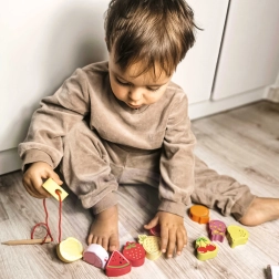 Este set de ensartar de madera con temática de frutas es una herramienta ideal para pequeños exploradores a partir de 18 meses. Con la aguja de madera, los niños ensartan las diferentes piezas de colores en la cuerda, desarrollando de forma natural la motricidad fina, la paciencia y el pensamiento lógico. Al mismo tiempo, aprenden de manera lúdica los colores y los nombres de las frutas.