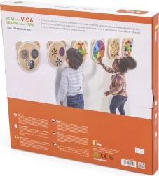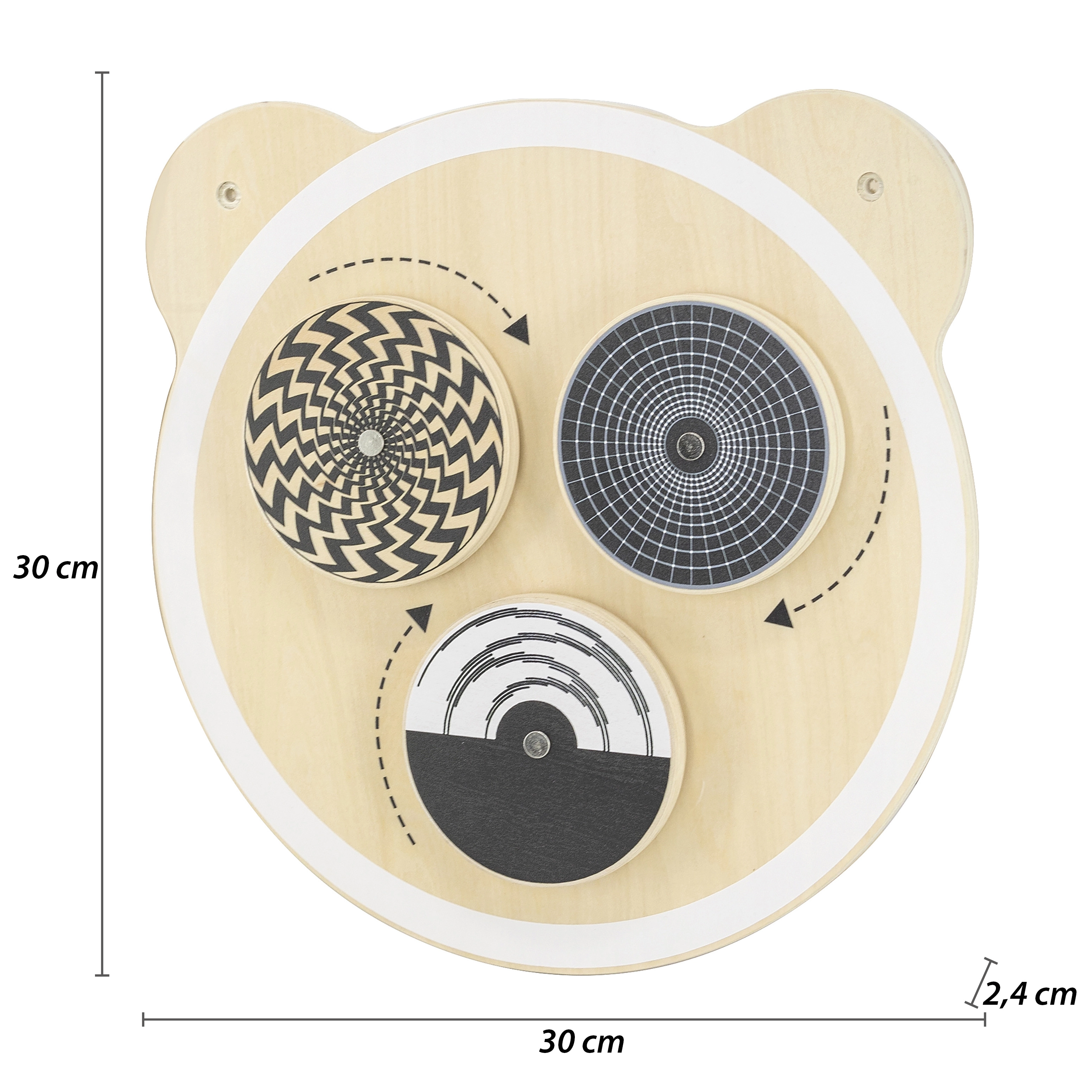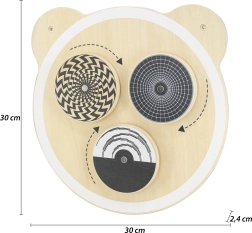 El tablero de pared de madera con motivo de oso es ideal para desarrollar el pensamiento lógico y la imaginación de los niños. Incluye tres elementos circulares que, al girar, crean ilusiones ópticas, y está pintado con pinturas no tóxicas en tonos vivos. Este juguete encantará a cualquier niño y es adecuado tanto para el hogar como para centros educativos.