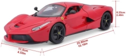 Este modelo del FERRARI LaFerrari a escala 1:18 de la marca Bburago, fabricado con gran precisión, destaca por los detalles de la carrocería y del interior. Gracias a la combinación de piezas metálicas y de plástico, el modelo luce auténtico y a la vez es resistente para su exhibición habitual y un juego cuidadoso.