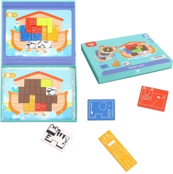 Descubre la magia de la historia del Arca de Noé y entrena el cerebro al mismo tiempo. El rompecabezas magnético Tooky Toy ofrece 30 desafíos de diversa dificultad: siguiendo el modelo, llena el tablero con 10 piezas de animales de madera de manera que no quede ningún espacio libre. Gracias al imán, las piezas se mantienen firmes en su lugar, por lo que es ideal también para los viajes.
