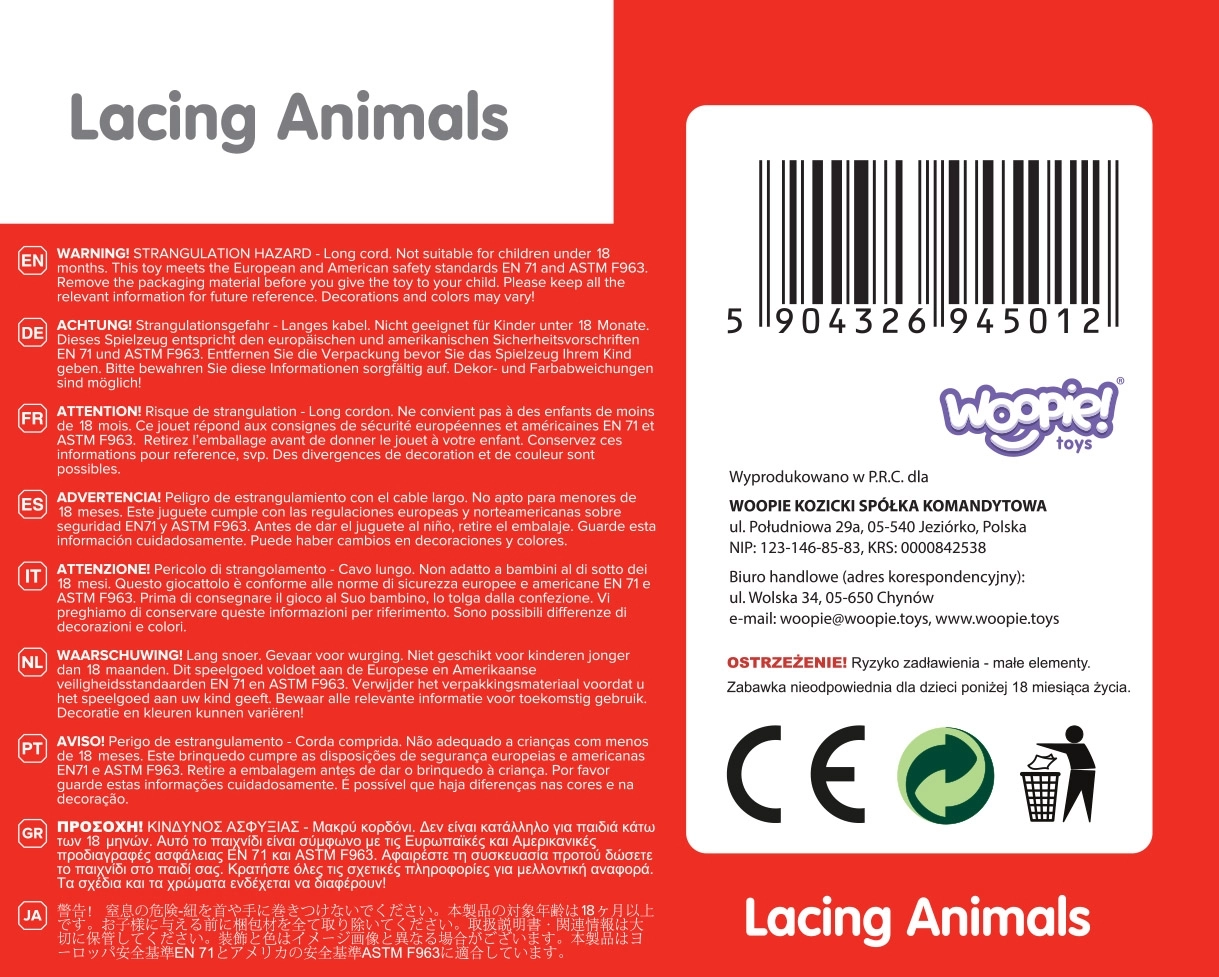 Descubre el set lúdico para ensartar WOOPIE GREEN con animales de safari, que guía a los niños desde los 18 meses al desarrollo de la motricidad fina, la coordinación mano-ojo y la paciencia. Las coloridas piezas de madera con pinturas seguras se ensartan fácilmente en el cordón y convierten el aprendizaje en un juego educativo y divertido.