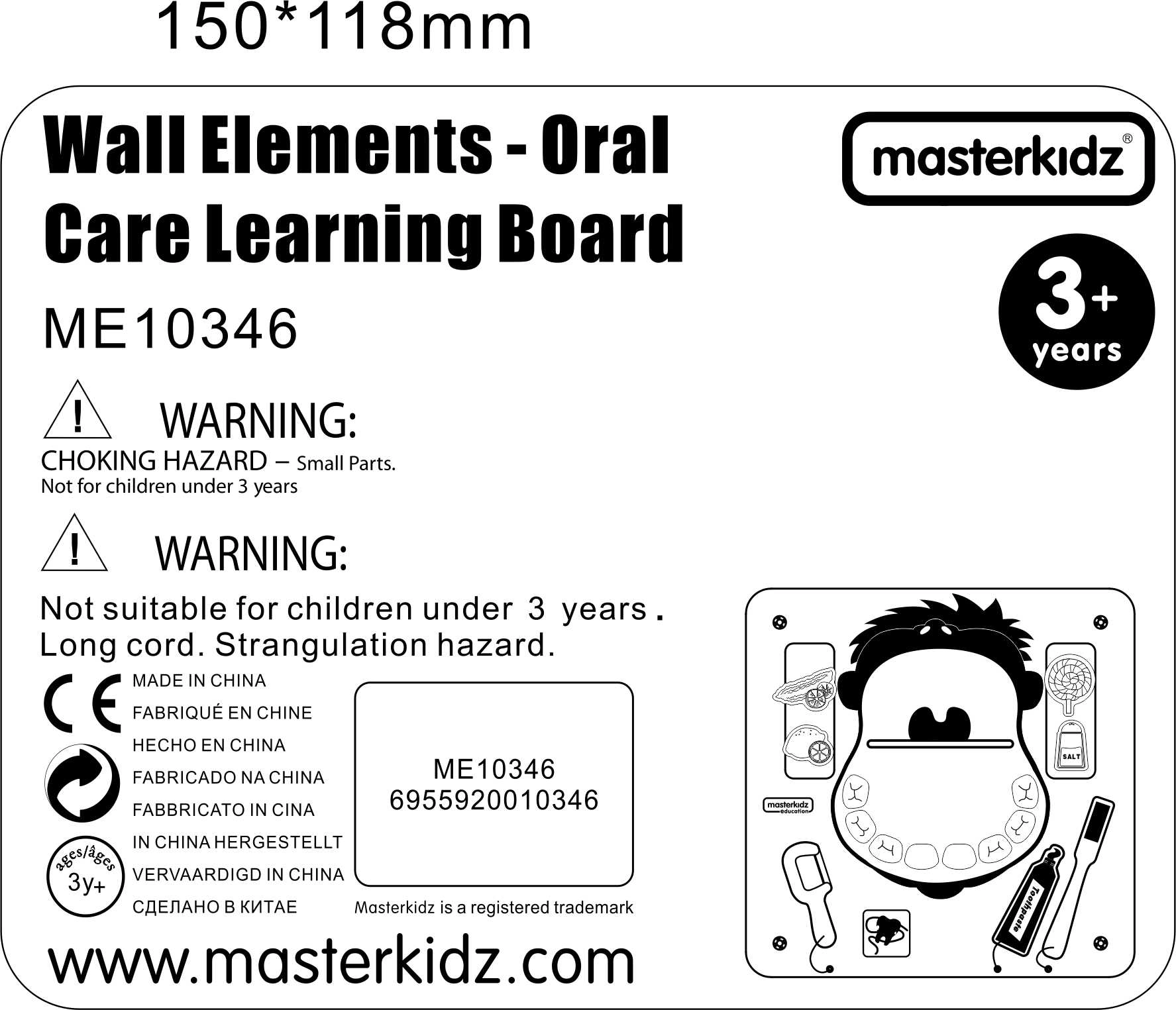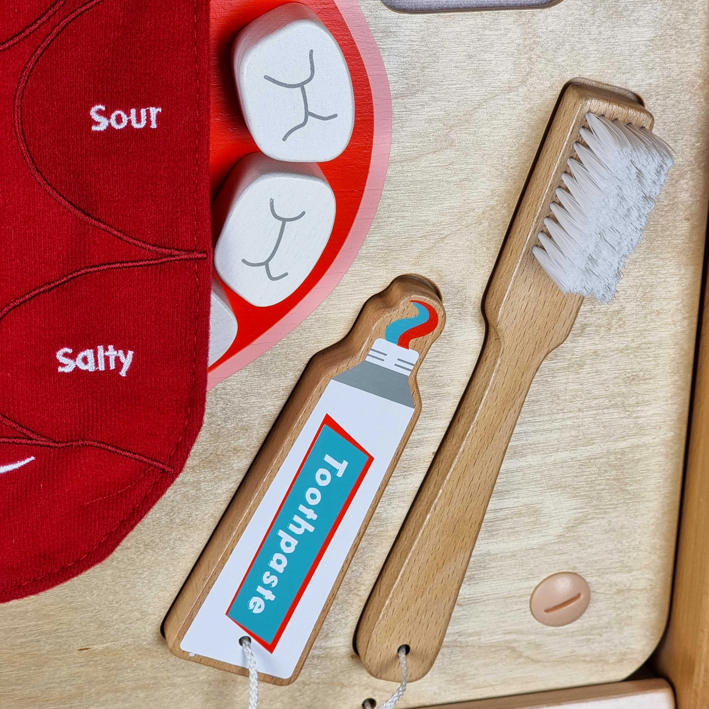 El divertido y educativo tablero de pared Masterkidz ayuda a los niños a adquirir una correcta higiene dental. Enseña a los niños a cepillarse los dientes correctamente, usar hilo dental y reconocer los sabores básicos (dulce, salado, ácido y amargo). Su resistente estructura de madera es ideal para guarderías, rincones infantiles y hogares.