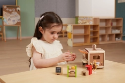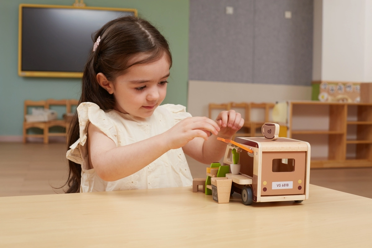 Madera robusta, bordes suaves e impresiones resistentes garantizan un juego seguro y duradero para niños a partir de 3 años.