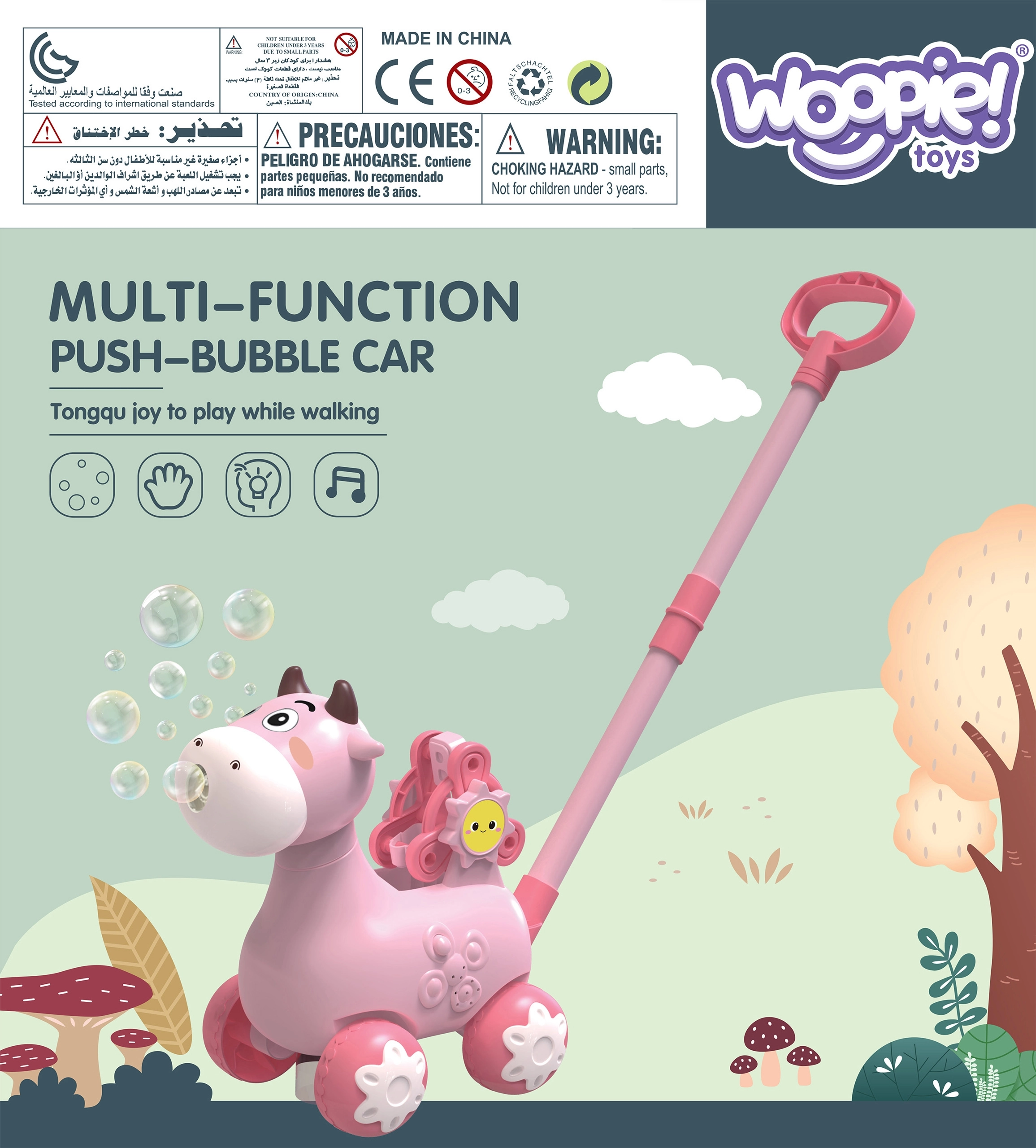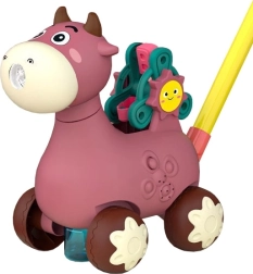 El adorable andador WOOPIE con forma de vaquita rosa ayuda a los niños a entrenar sus primeros pasos mientras se divierten a lo grande. Ofrece creación de burbujas, melodías y un rodillo giratorio con letras para un aprendizaje lúdico. Gracias a su asa cómoda, es adecuado para manos pequeñas y fomenta las habilidades de coordinación y motricidad.