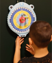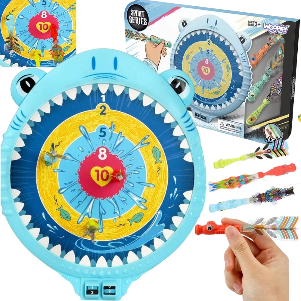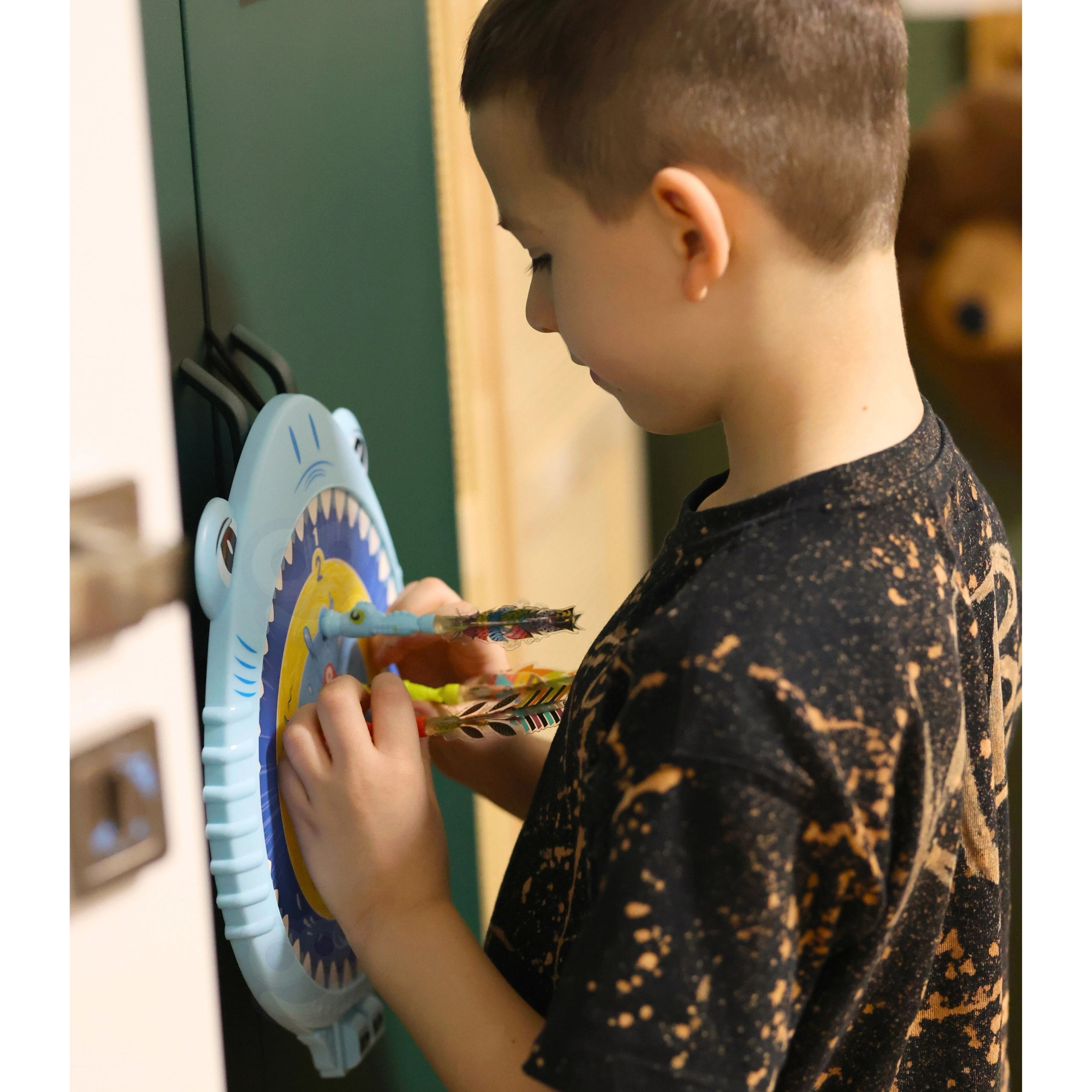 La diana magnética con forma de tiburón atraerá la atención de cualquier niño y lo animará a jugar.