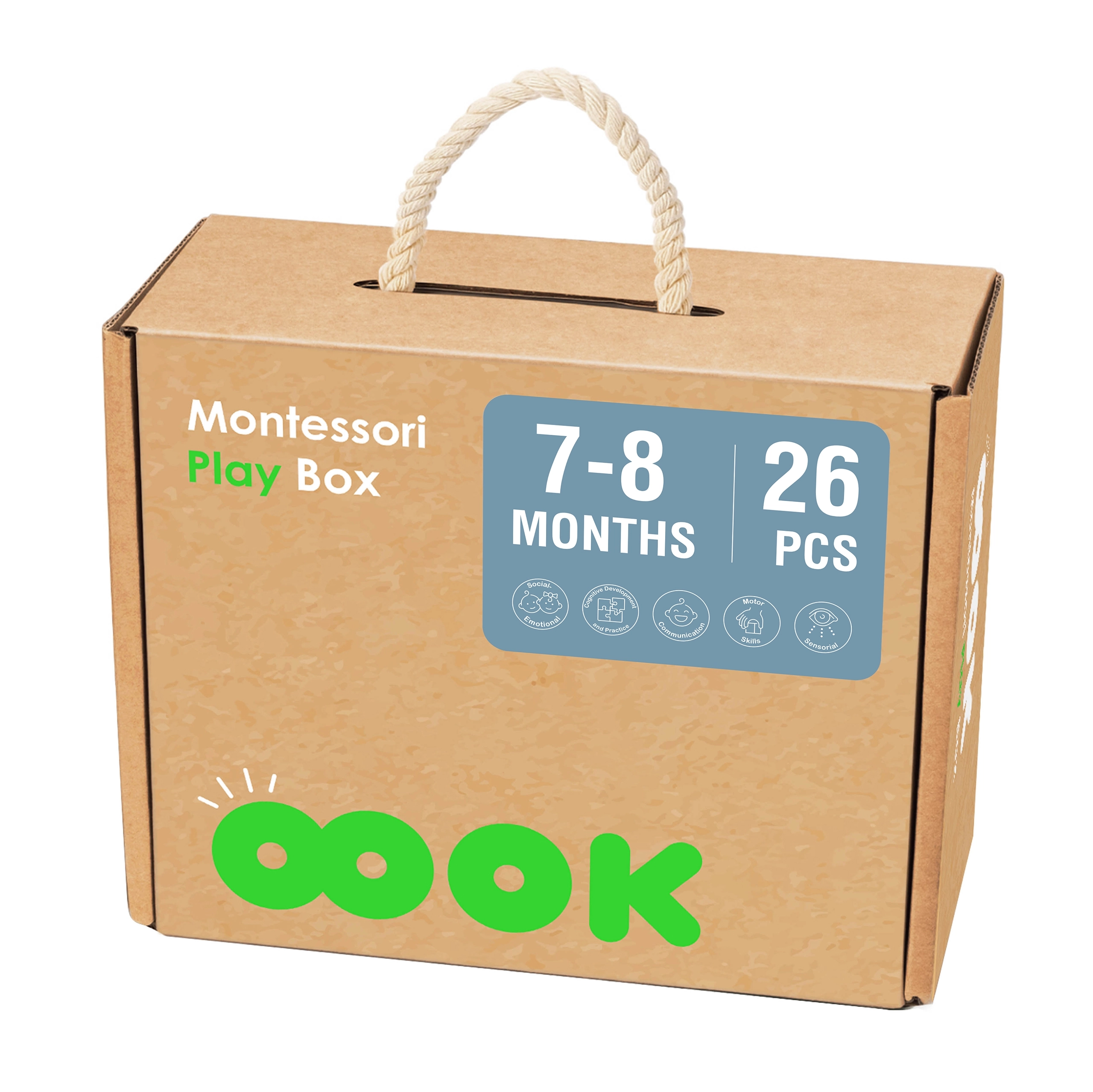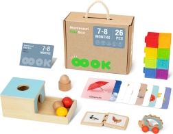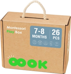 La caja Montessori de Tooky Toy está diseñada para niños de 7-8 meses y ofrece a padres e hijos una excelente manera de apoyar su desarrollo. La caja contiene 6 juguetes distintos que estimulan los sentidos, ayudan a mejorar la coordinación y fomentan el pensamiento lógico.