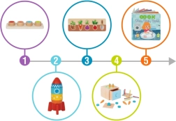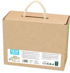 Set de madera diseñado para apoyar el desarrollo cognitivo y la motricidad fina para niños a partir de 16 meses.