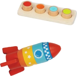 - Cohete apilable - Piezas de madera de colores para desarrollar la imaginación espacial.