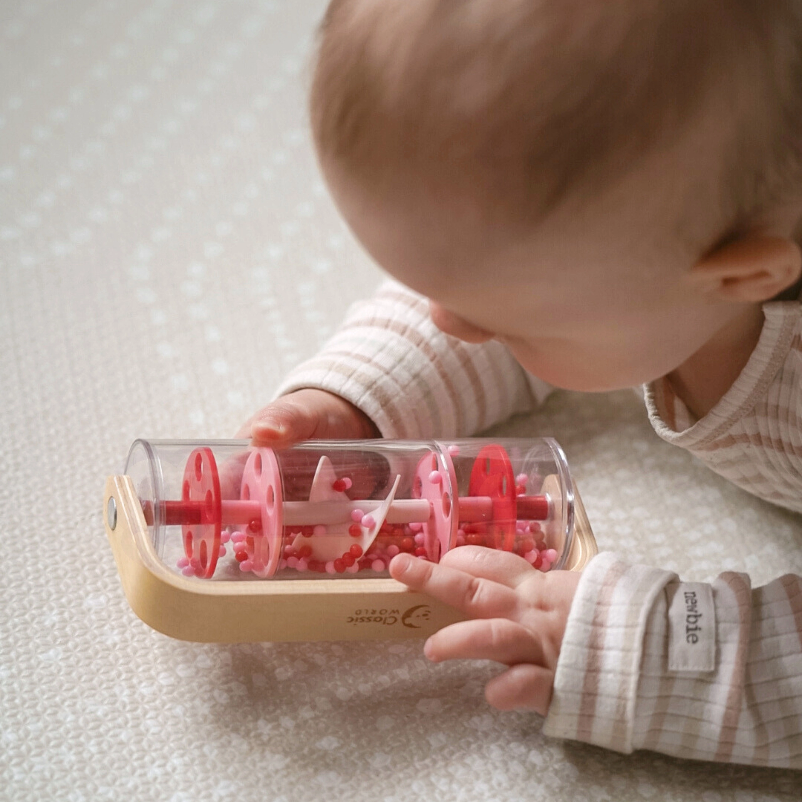 Un juguete calmante y divertido para bebés y niños pequeños: el palo de lluvia con bolitas de Classic World crea, al girarlo y agitarlo, un suave sonido de lluvia, favorece el desarrollo sensorial y, gracias a sus extremos de madera, se sujeta muy bien incluso con manos pequeñas.