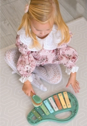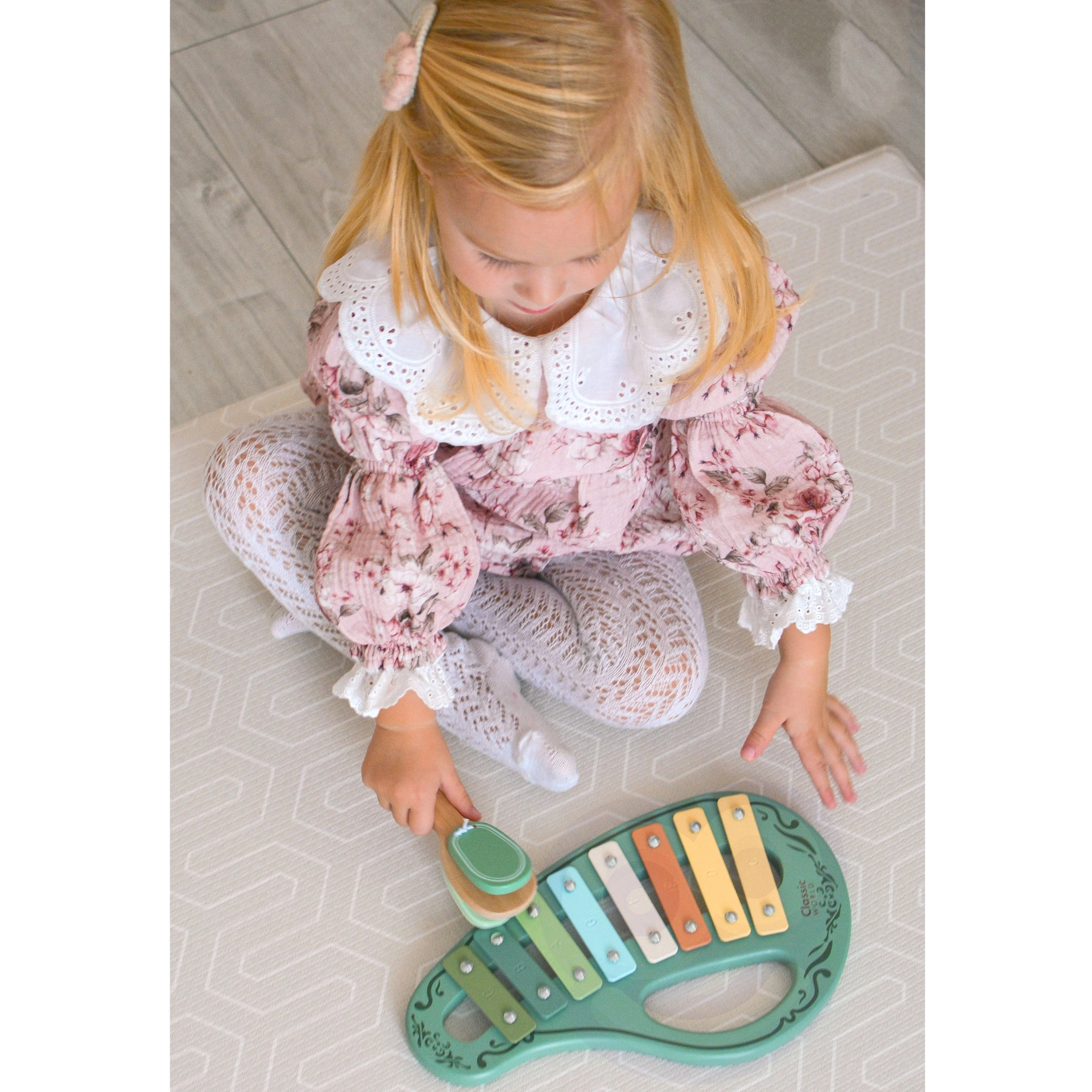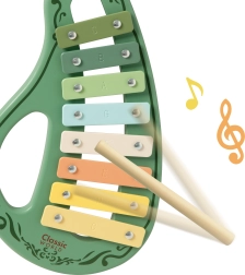 Los instrumentos están fabricados en madera lacada y pintados con pinturas no tóxicas. Las formas ergonómicas se adaptan fácilmente a las manos pequeñas y favorecen la motricidad fina, el sentido del ritmo y la expresión musical. Ideales para divertirse en familia y para las primeras lecciones de música en casa.