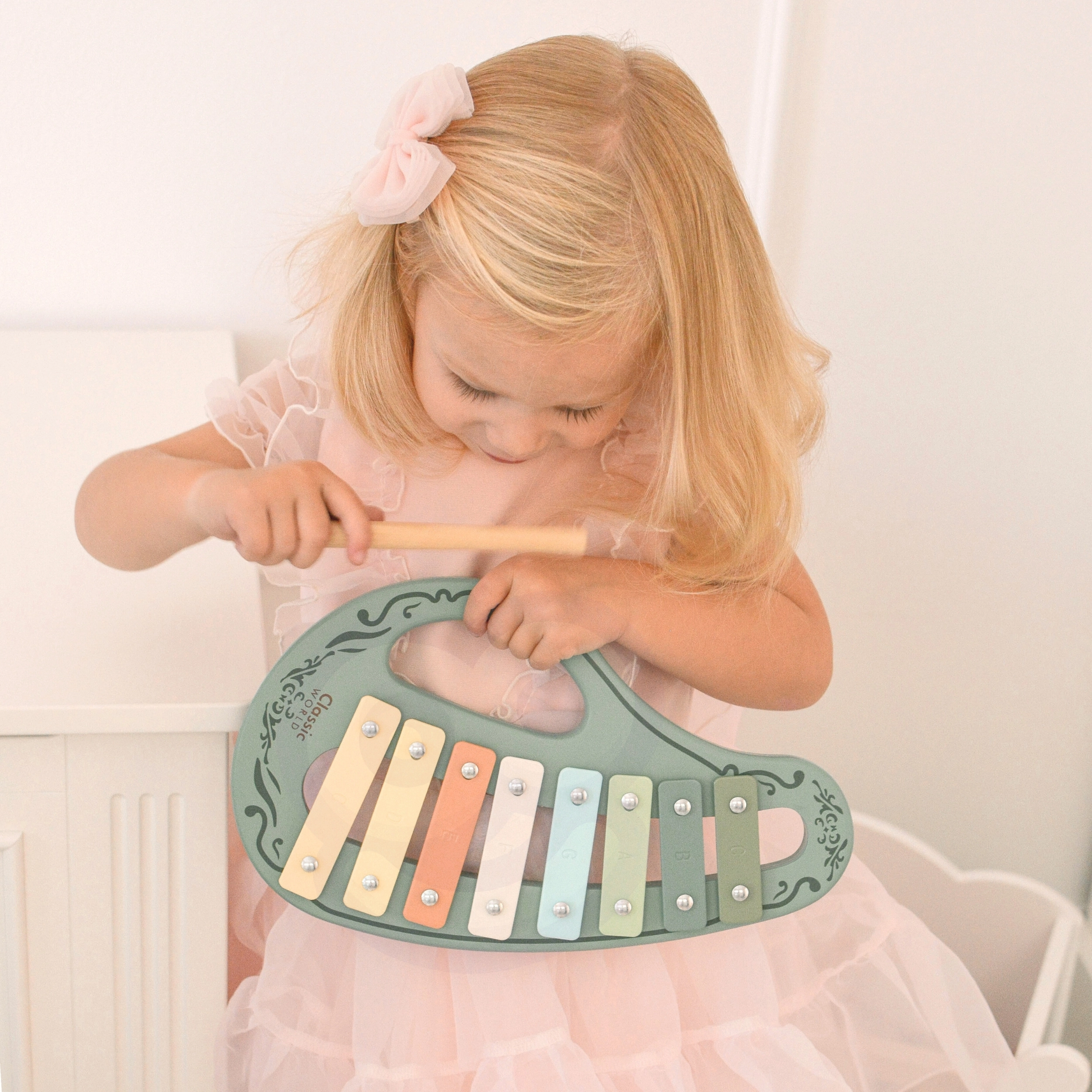 Los instrumentos son de madera lacada con pinturas no tóxicas y cuentan con bordes redondeados para un juego seguro de los más pequeños.