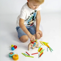 Descubre el versátil set de juegos de madera de la marca TOOKY TOY, que aporta a los niños horas de diversión creativa. El simpático elefante sirve como base para construir, las varillas de colores se usan para el mikado y tampoco faltan dos yo-yos y una peonza. El juego fomenta la motricidad fina, las habilidades de coordinación y la paciencia; está fabricado con materiales seguros y no tóxicos y desarrolla de forma excelente el pensamiento lógico.