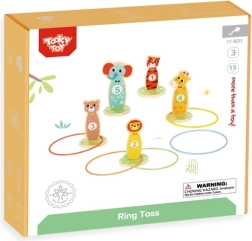 El adorable juego de lanzamiento de madera con animalitos de TOOKY TOY ofrece diversión para niños a partir de 3 años tanto en casa como al aire libre. Los niños entrenan la coordinación ojo–mano, la atención y la paciencia lanzando aros a dianas numeradas. Reglas sencillas, número ilimitado de jugadores y la posibilidad de aumentar la dificultad alejando las dianas garantizan horas de juego activo.