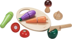 Las coloridas piezas de verdura están unidas por velcro: los niños pueden cortarlas y volver a unirlas repetidamente sin riesgo de lesiones.