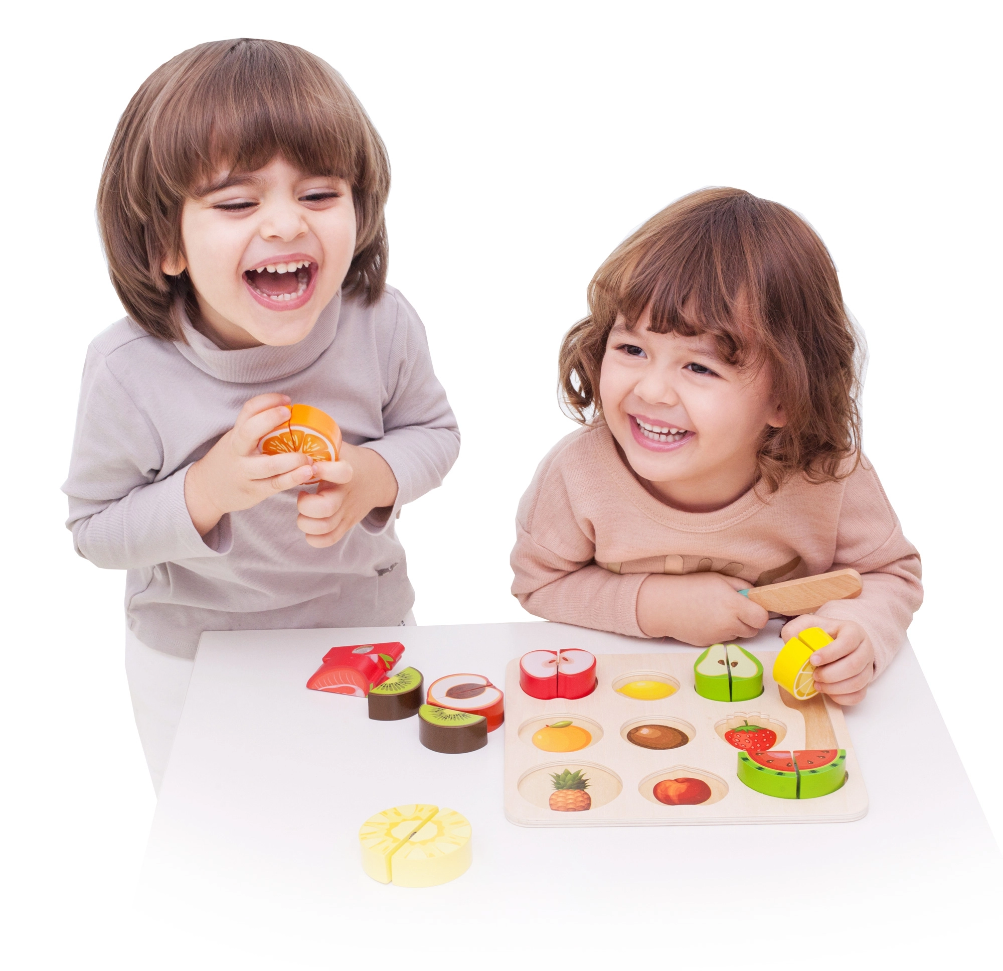 Este set ayuda a los niños a reconocer diferentes tipos de frutas y colores de forma lúdica.