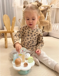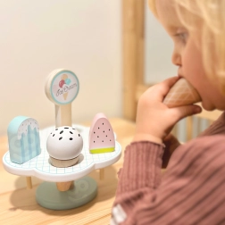 Este precioso set de helados de madera es ideal para niños que aman el juego creativo. Los colores pastel y el esmerado acabado garantizan horas de diversión jugando a vender helados o equipando la cocina infantil. Una opción saludable para el desarrollo de la creatividad y las habilidades sociales. Los imanes aportan estabilidad, lo que hace el juego aún más agradable.