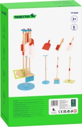 El juego de limpieza de la marca Tooky Toy enseña a los niños la responsabilidad y les permite imitar a los adultos en las tareas cotidianas. Gracias al soporte práctico con base azul, es posible guardar fácilmente las herramientas.
