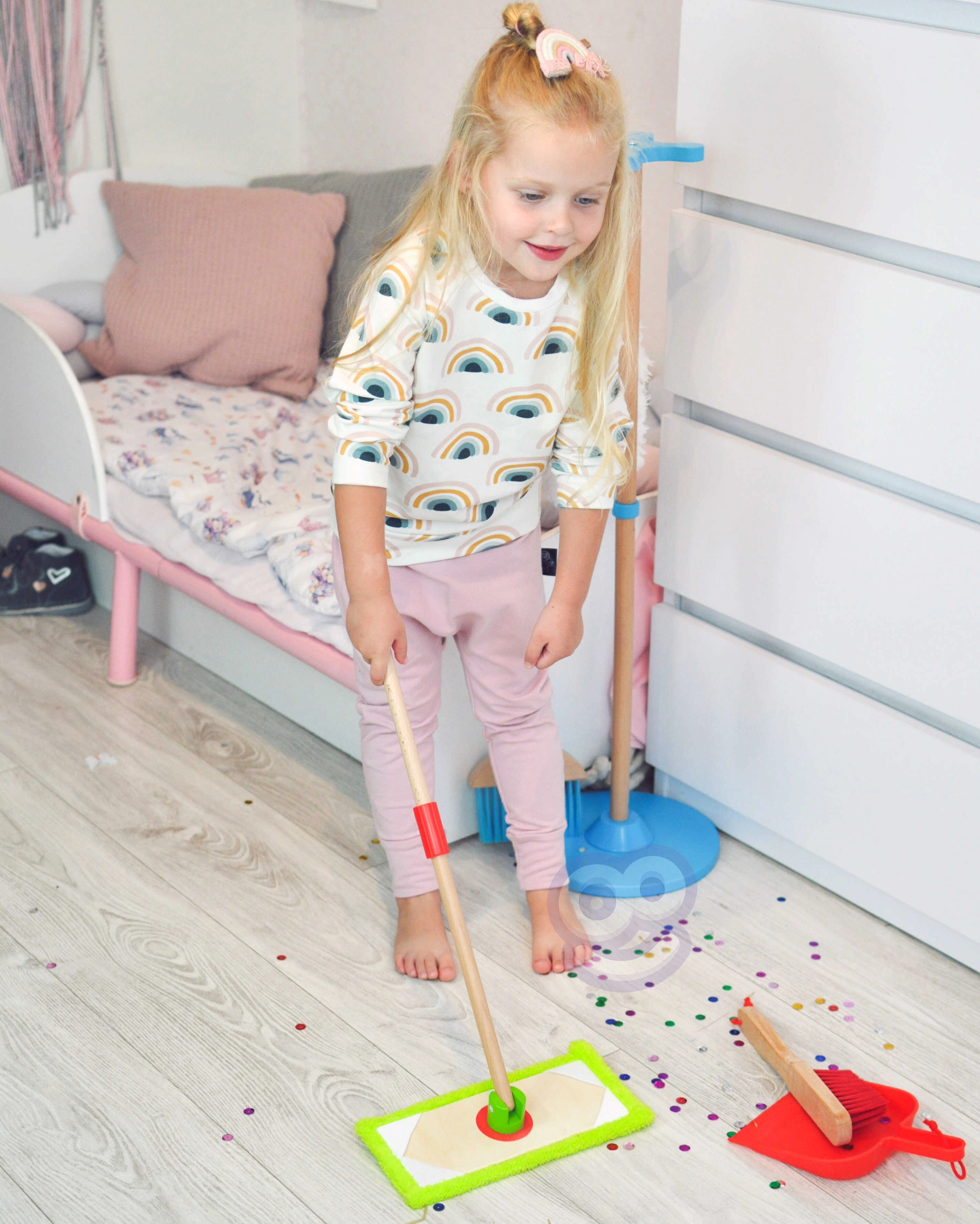 Con el juego de limpieza, los niños aprenden a cuidar el orden y la limpieza en su habitación, igual que los adultos.