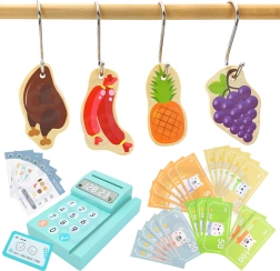 Incluye 73 elementos como balanza, lector de tarjetas, productos alimenticios y cajones para un juego activo y de aprendizaje.