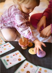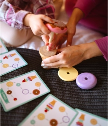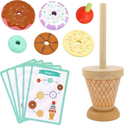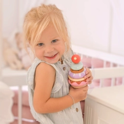 El juguete de madera para apilar helados de la marca WOOPIE GREEN es una opción ideal para niños a partir de 12 meses. Este juguete educativo permite al niño descubrir el mundo de los colores y las formas y desarrollar el pensamiento lógico y las habilidades manuales. Los niños pueden crear sus propias combinaciones con anillos de colores o seguir las tarjetas con patrones incluidas, ¡asegurando que cada juego sea una nueva aventura!
