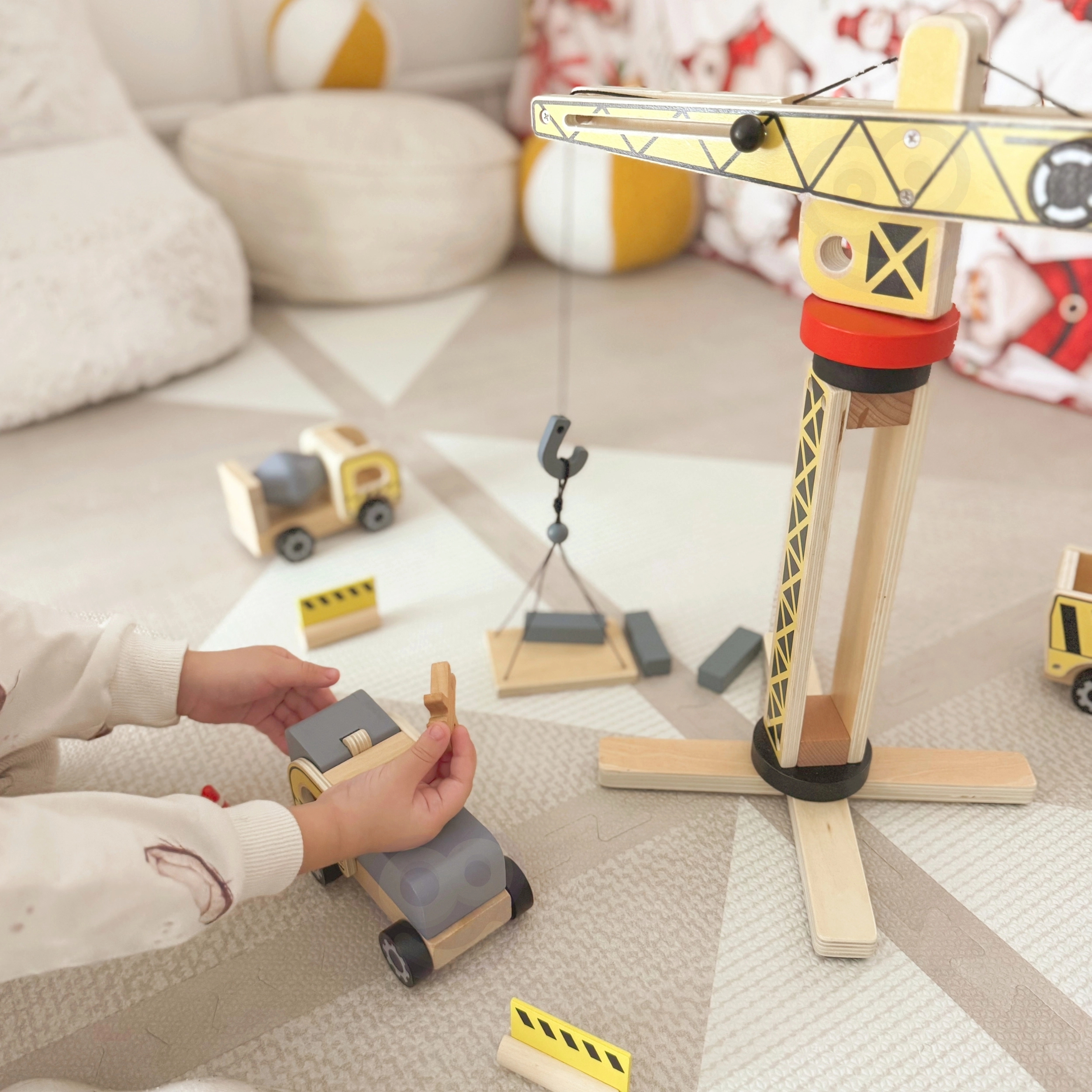 Descubre la alegría de construir con el set de construcción de madera 5 en 1 de la marca WOOPIE GREEN. Este set permite a los niños ponerse en el papel de un pequeño ingeniero. La grúa, los vehículos de obra y la base ilustrada ofrecen innumerables escenarios de juego, desarrollan las habilidades motoras e impulsan la creatividad.