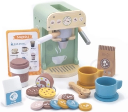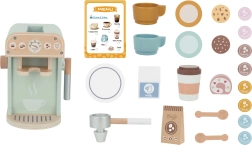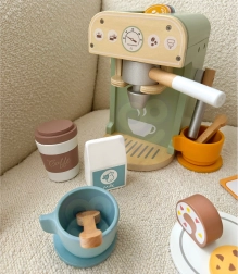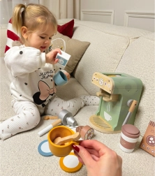 El set de Woopie Green es la elección ideal para los niños que sueñan con convertirse en pequeños baristas. Gracias a sus 25 elementos, que incluyen cafetera, tazas, cápsulas y leche, los niños pueden imitar a los adultos y desarrollar sus habilidades jugando a la cafetería. Este set está fabricado en madera natural y pinturas seguras para niños, lo que garantiza un aspecto realista y un juego seguro.