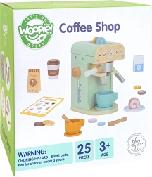Diversión en la cafetería ofrece una gran oportunidad para aprender a través del juego. El set de la marca Woopie Green permite a los niños jugar a ser pequeños baristas con 25 elementos, incluyendo cafetera, tazas, cápsulas y leche. Fabricado en madera natural y pintado con colores seguros, garantiza un aspecto realista y una diversión segura.