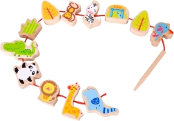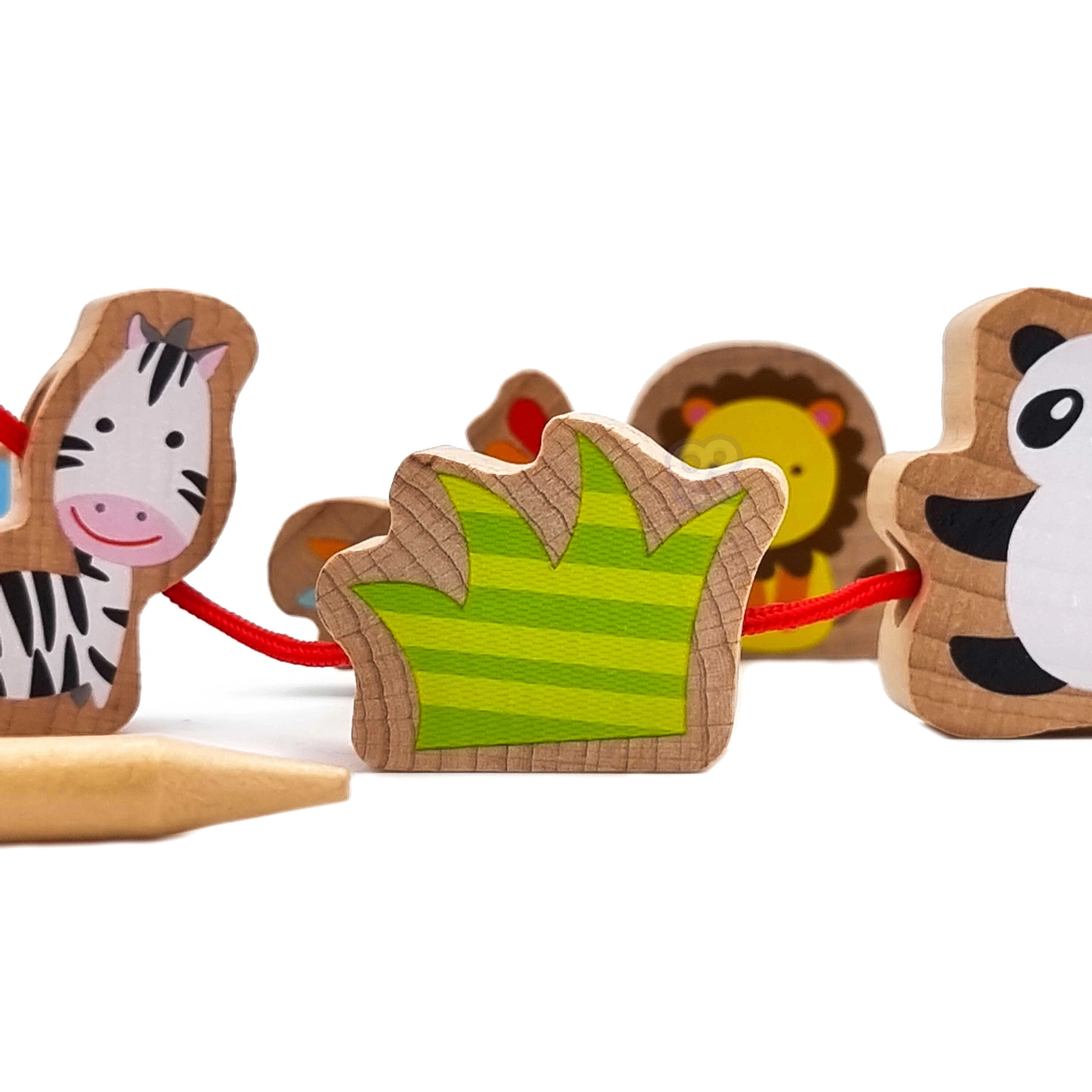 Este adorable set de ensartar combina el ensamblaje creativo y el ensartado con el aprendizaje de animales favoritos como la panda, el león, la jirafa o el cocodrilo. Los niños practican el agarre, la precisión y la concentración mientras crean sus propias historias del mundo del zoo. Actividad ideal para un juego tranquilo y concentrado en casa o de viaje.