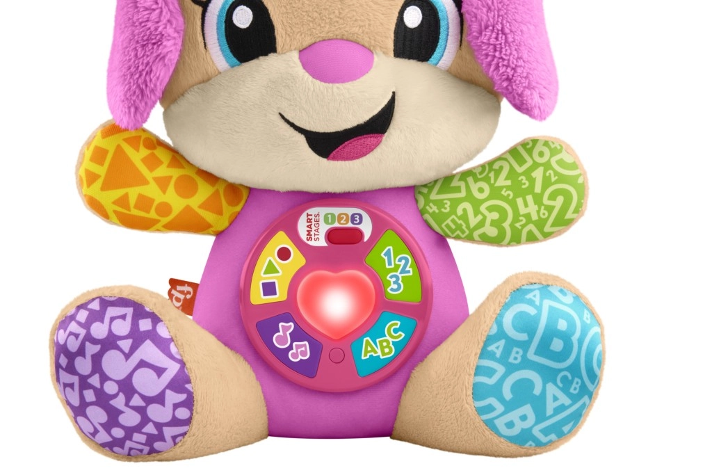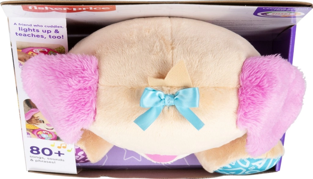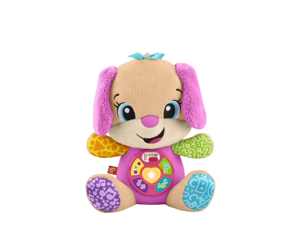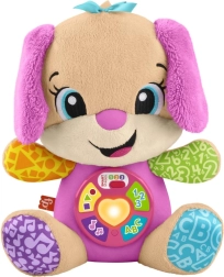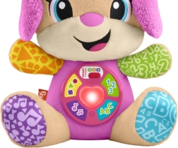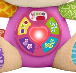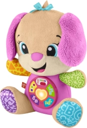 FISHER-PRICE Laugh & Learn Smart Stages Perrita Hermana es un suave compañero para abrazar y a la vez un juguete educativo inteligente. Los niños de 6 a 36 meses descubren habilidades iniciales mediante canciones, luces y elementos táctiles. Al presionar los botones de la barriguita, se ilumina el corazoncito y se activan canciones, números o colores: el aprendizaje es natural y lleno de alegría.