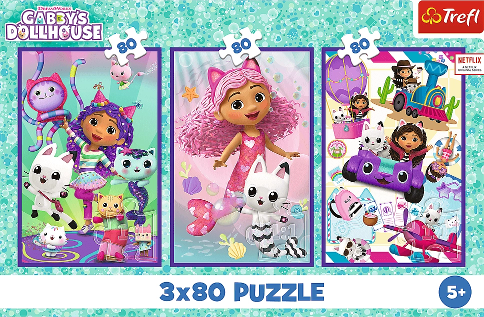 Descubre escenas llenas de color de las aventuras de GABBY y sus amigos gatunos. Tres puzzles independientes de 80 piezas brindan a los niños largas horas de diversión creativa, desarrollan la paciencia, la concentración y la motricidad fina y fomentan la imaginación visual.
