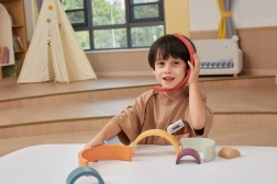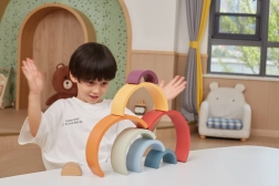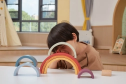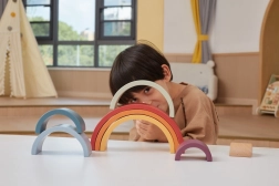 7 arcos y una pieza interior invitan a construir arcoíris, túneles y puentes. Cada combinación estimula la imaginación y el pensamiento lógico.