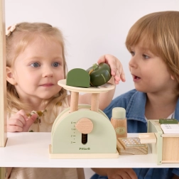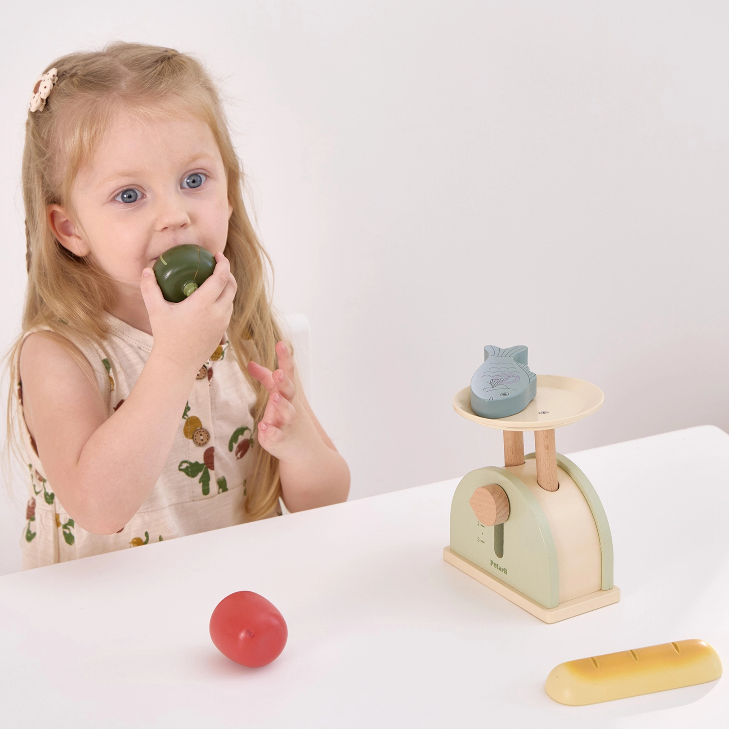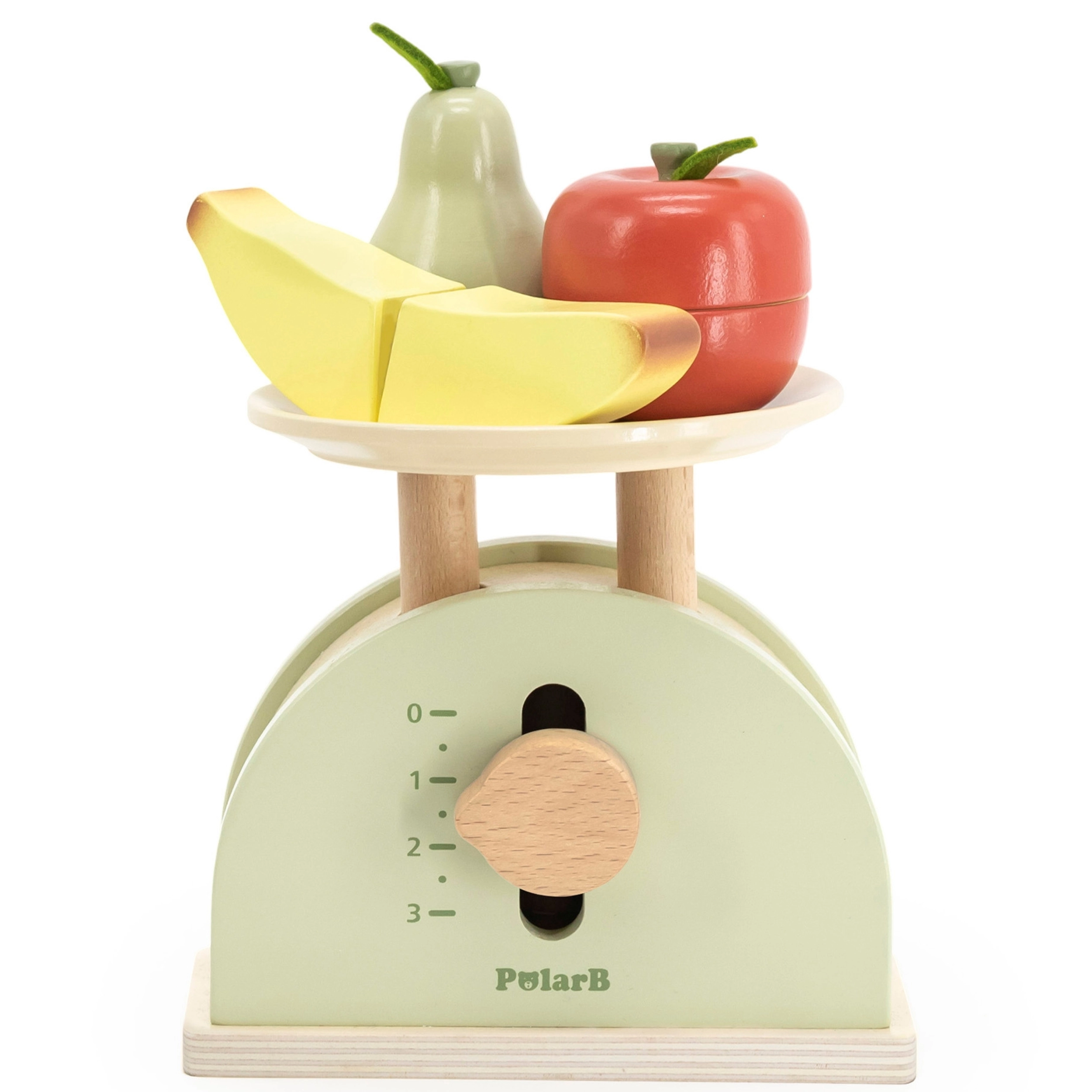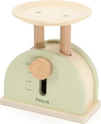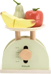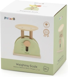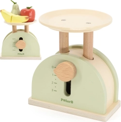 La báscula de cocina de madera POLARB está diseñada para pequeños cocineros y dependientes. Combina madera resistente con suaves colores y una esfera fácil de leer que ayuda a los niños a comprender los principios básicos de equilibrio, comparación y medición. Es ideal para la cocinita infantil y la tiendecita, y estimula los juegos de rol.