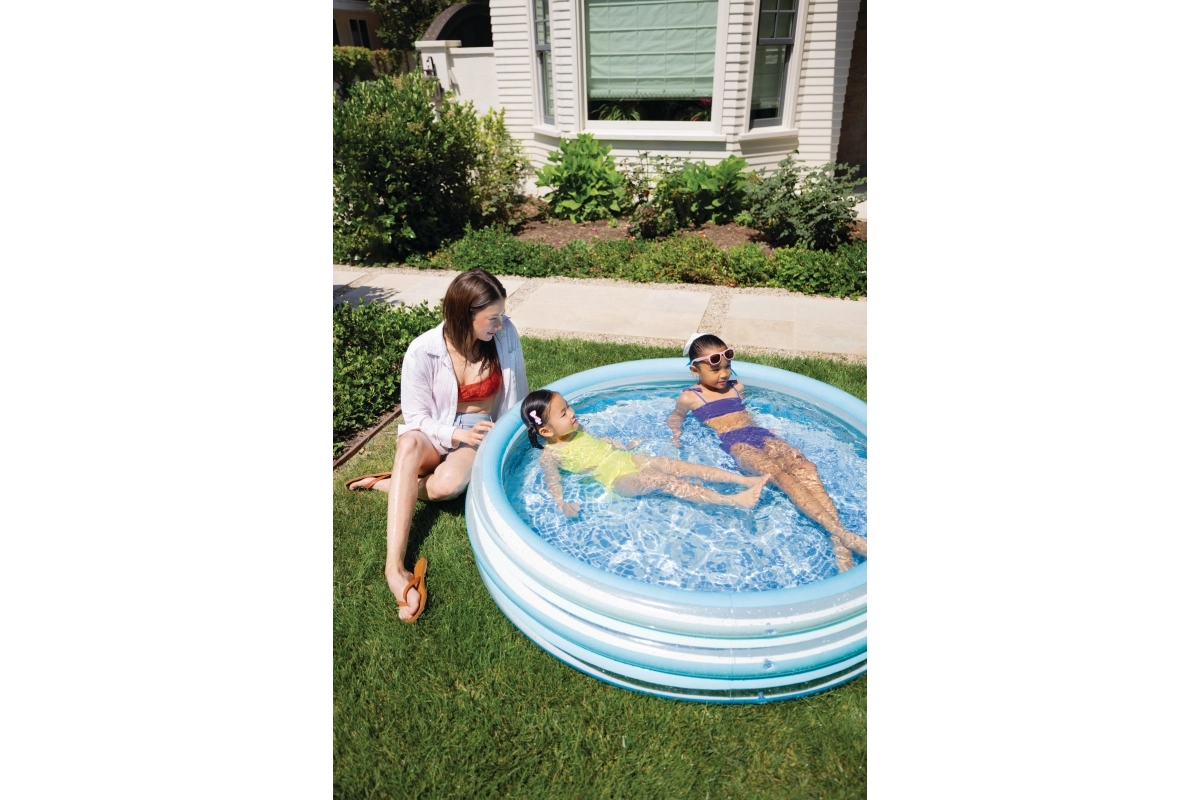 ¡Haz felices a los niños con juegos acuáticos de verano! Esta piscina inflable con un diámetro de 147 cm y una altura de 33 cm ofrece un chapoteadero seguro para pequeños amantes del agua a partir de 2 años. Gracias a sus tres cámaras de aire, el suelo acolchado antideslizante y la fácil instalación, es ideal para el jardín o el patio.