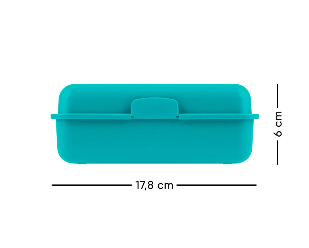 Con bordes suaves y apertura sencilla, esta caja es ideal para el uso diario. El asa integrada facilita su manejo.