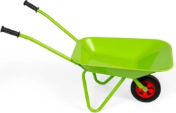 Gracias a su diseño ergonómico con dos asas y una rueda de goma resistente, la carretilla es fácil de manejar incluso para los más pequeños.