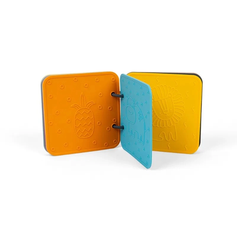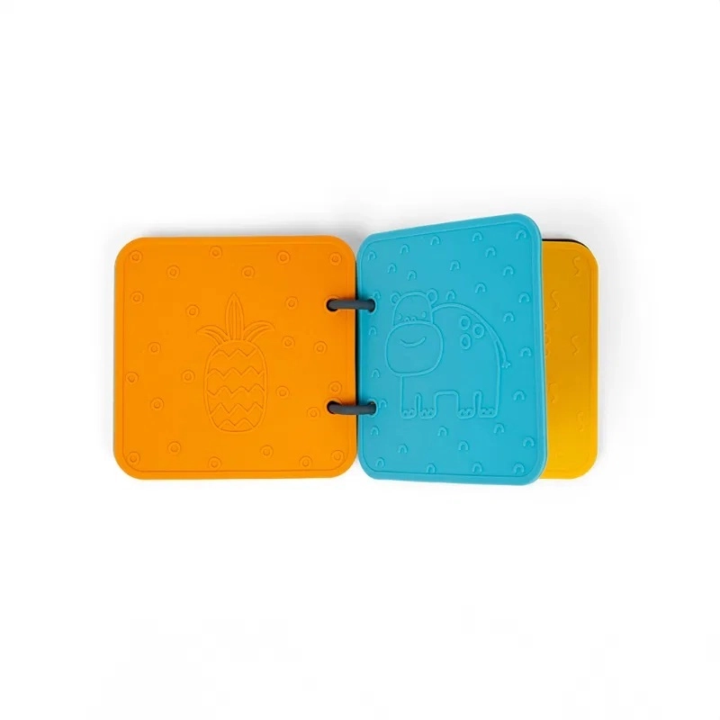 El libro está hecho de silicona alimentaria no tóxica, segura y suave para la delicada piel del bebé.