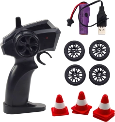 El paquete incluye también neumáticos adicionales para drift, que facilitan derrapes controlados, y un juego de conos para crear tu propia zona de entrenamiento. Gracias a la batería recargable por USB, se elimina la necesidad de pilas desechables, lo que resulta más económico y permite una diversión más prolongada.