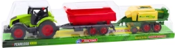 El tractor, el remolque y la empacadora crean un conjunto completo con el que los niños pueden imitar fácilmente el trabajo en el campo: desde la recogida hasta el transporte de los fardos de heno.