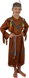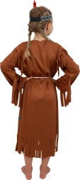Vestido marrón con diseños decorativos y abundantes flecos que aseguran un look llamativo y libertad de movimiento. El material textil ligero es agradable para llevar todo el día.