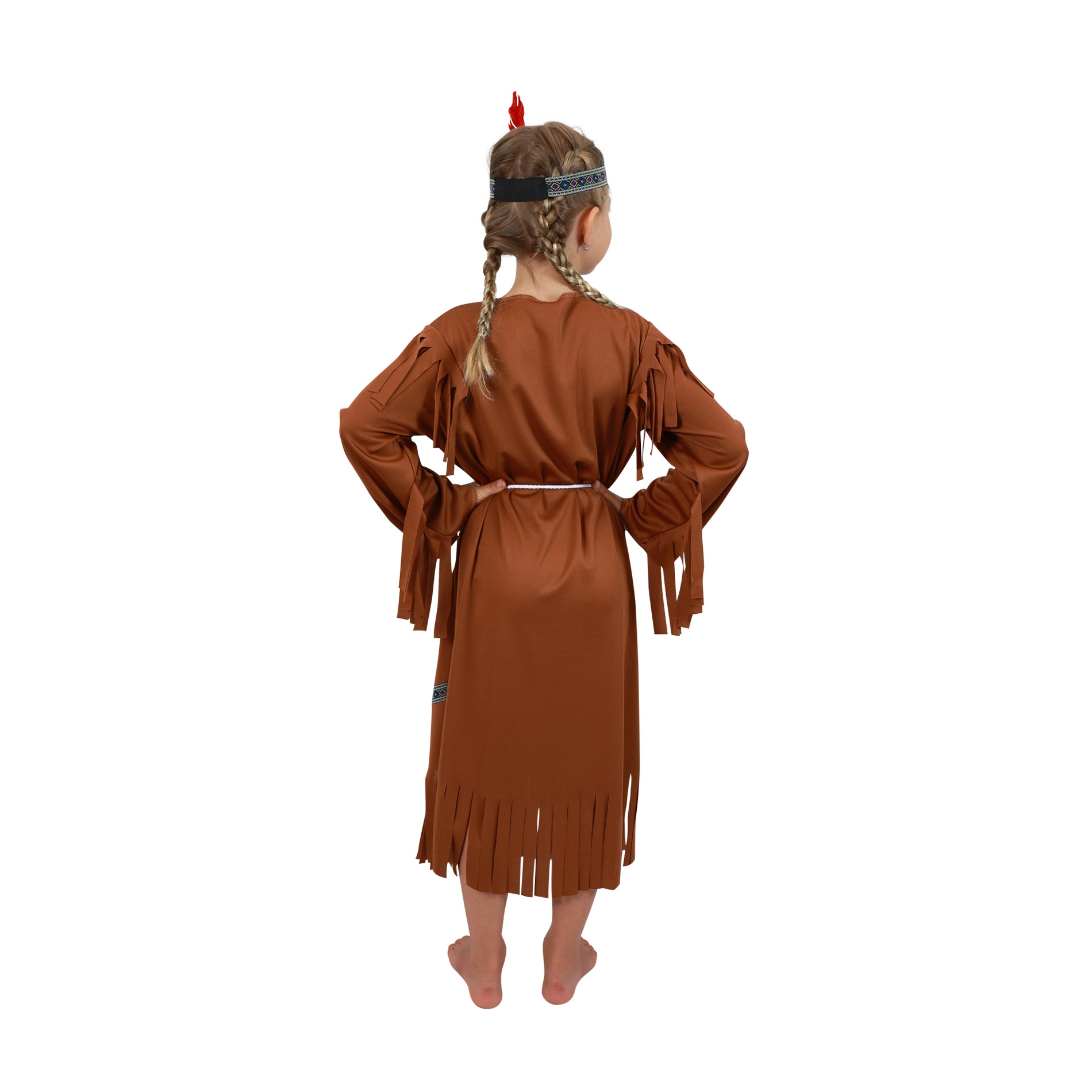 El disfraz para niña está diseñado para la comodidad y el efecto: el vestido marrón está adornado con bordes en contraste y abundantes flecos que se mueven con gracia a cada paso. El agradable material textil y el corte más holgado favorecen la libertad de movimiento, para que tu pequeña disfrute sin limitaciones. La diadema con pluma a juego completa el look y el cordón sirve como cinturón sencillo.