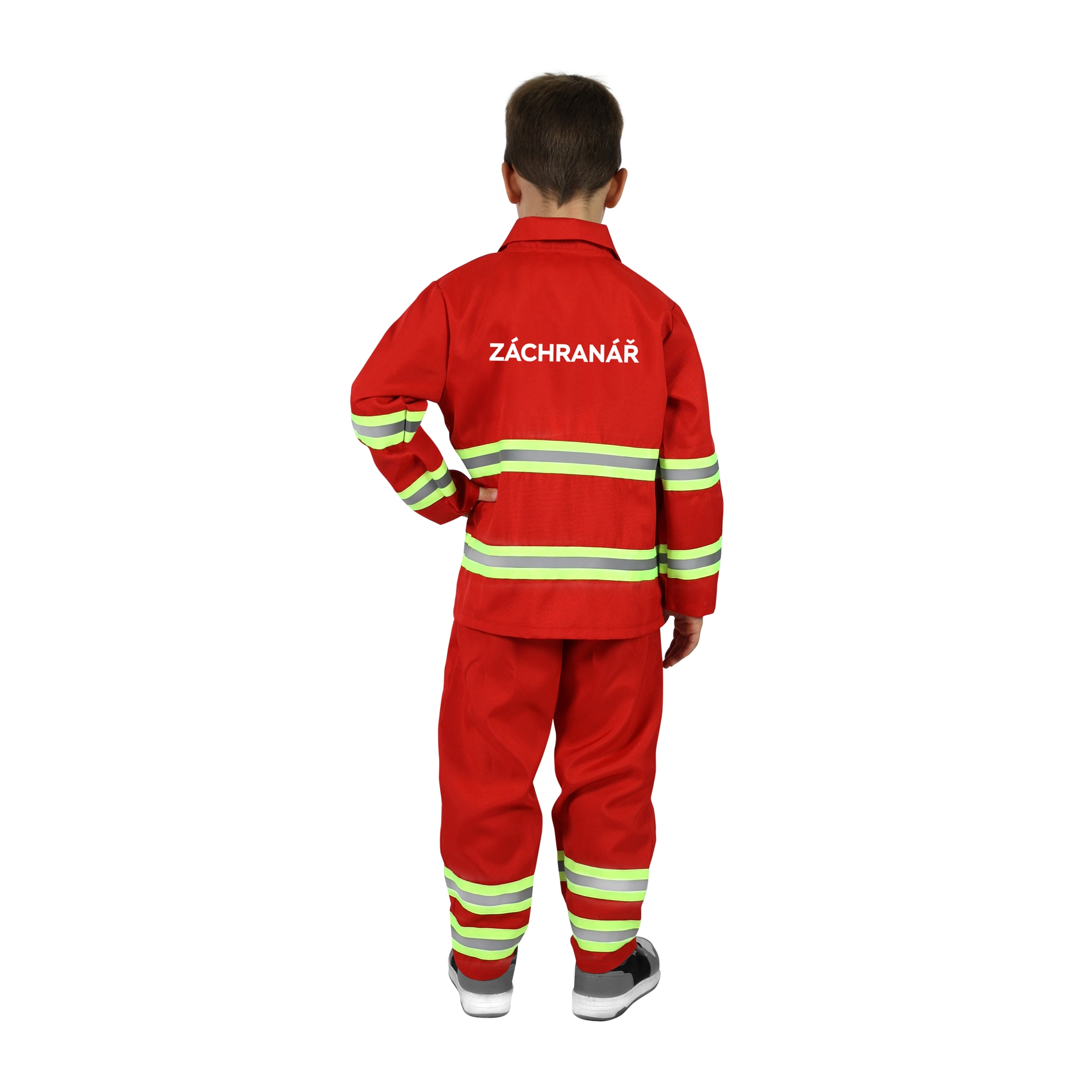 El set incluye una blusa con el llamativo letrero “ZÁCHRANÁŘ” y pantalones, para crear fácilmente un conjunto completo para carnaval, bailes de disfraces, fiestas temáticas y juegos de héroes del día a día.