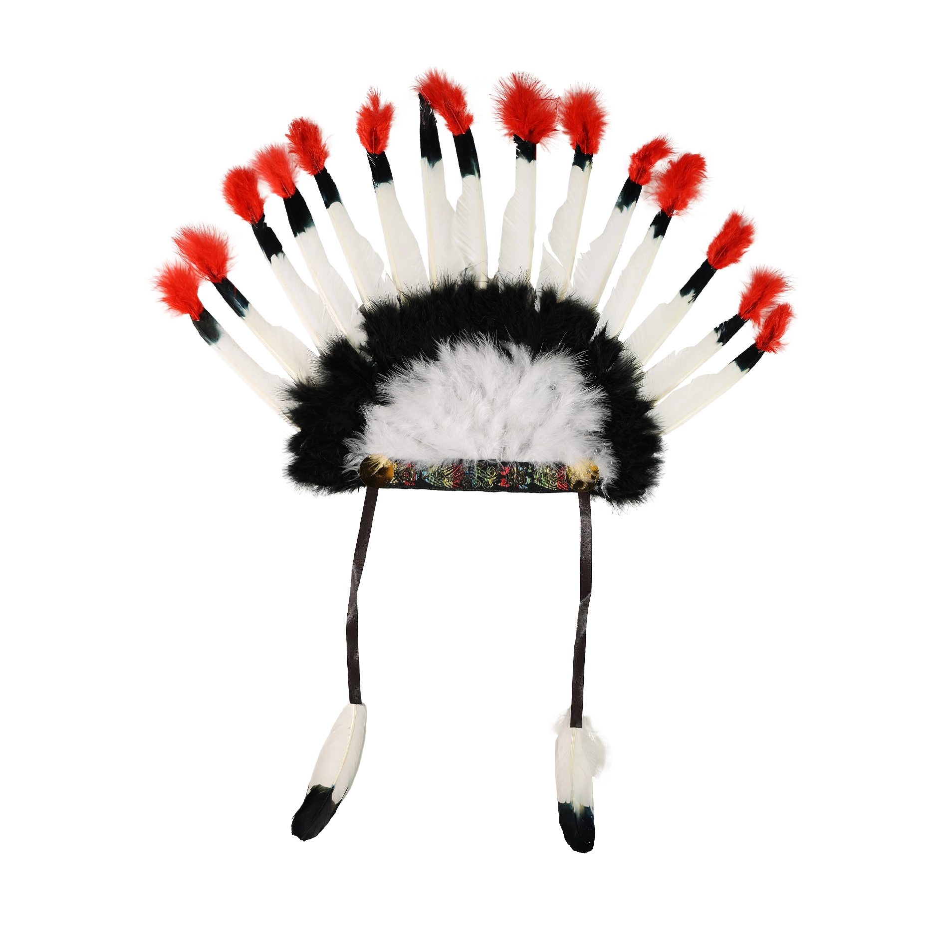 - banda decorada, plumas de colores (el patrón puede variar)