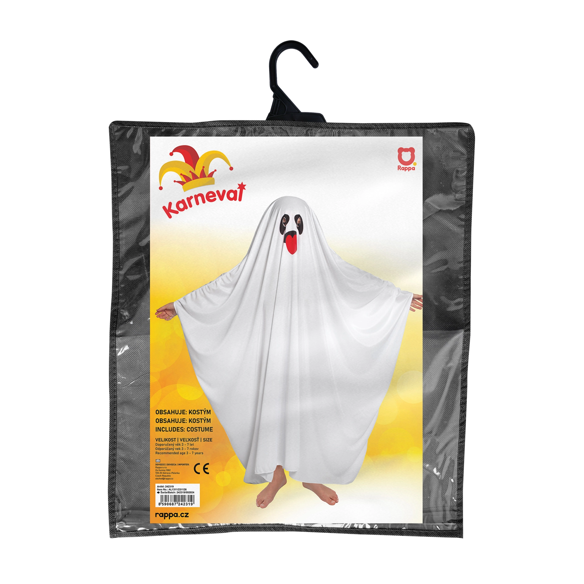 Gracias a su diseño universal, el disfraz se coloca fácilmente sobre la ropa cotidiana y es adecuado para diferentes estaturas de niños de 3 a 7 años. Las aberturas para los ojos ofrecen mejor visibilidad y un movimiento seguro durante los juegos y el “truco o trato”.