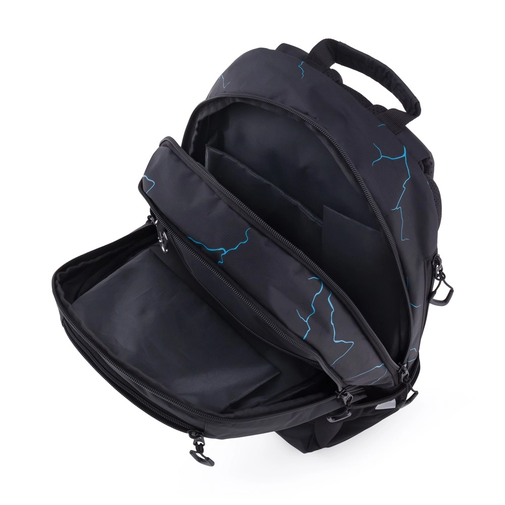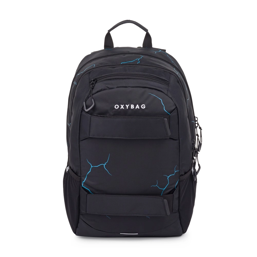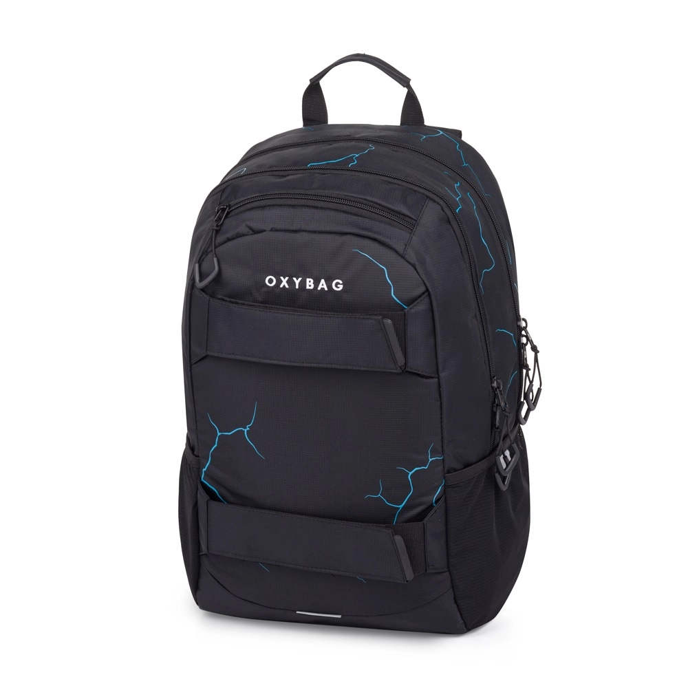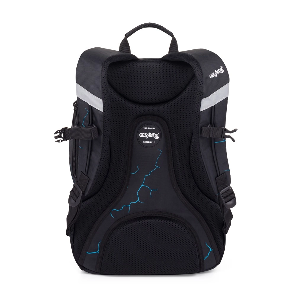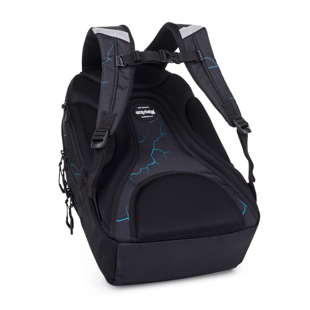 La mochila para estudiantes OXY SPORT Abstract está diseñada para el confort diario y la durabilidad. La espalda ergonómica, las hombreras acolchadas ajustables y la correa de pecho distribuyen la carga y aseguran comodidad al llevarla a la escuela y en actividades de ocio. El diseño moderno con líneas azules y elementos reflectantes aumenta la visibilidad y la seguridad.
