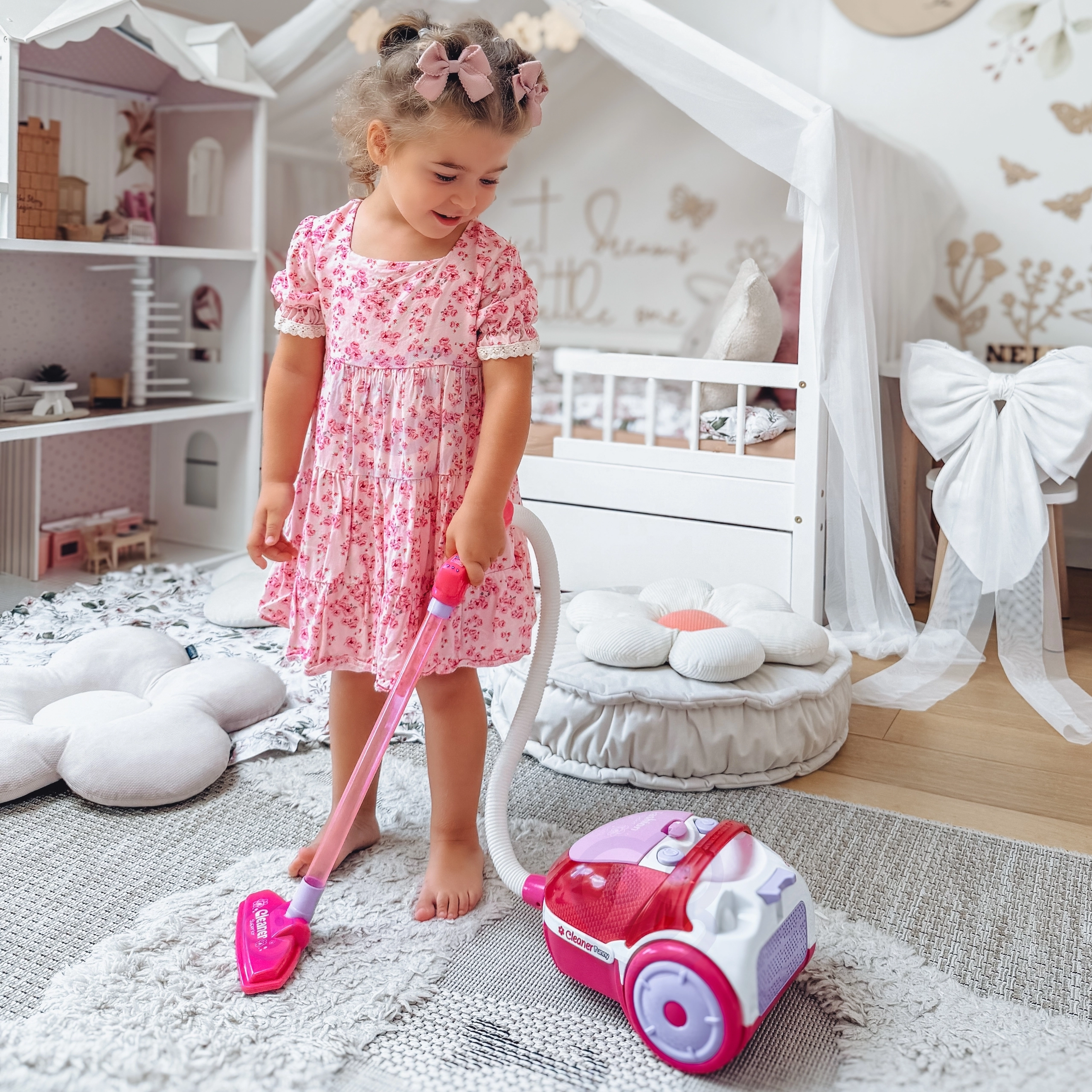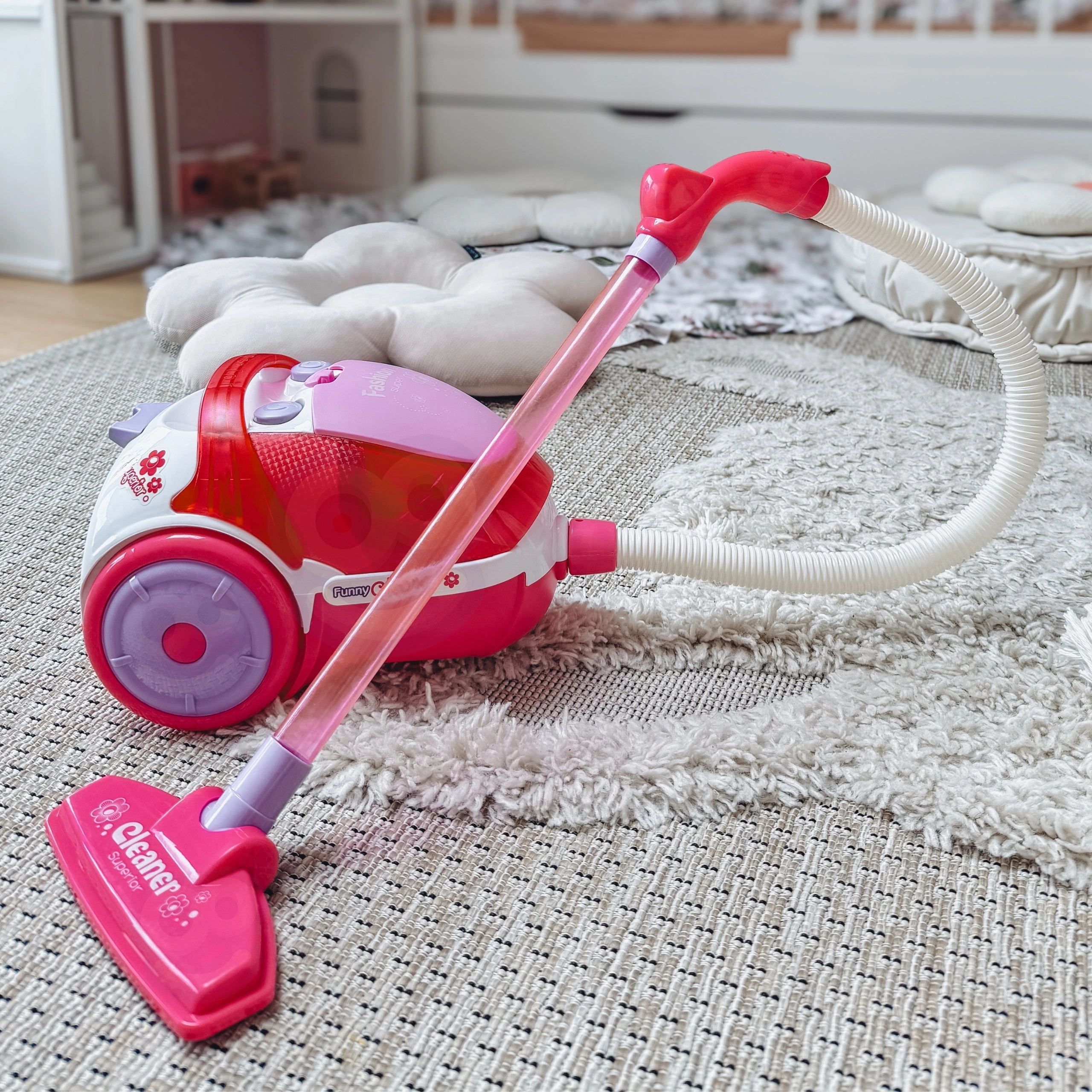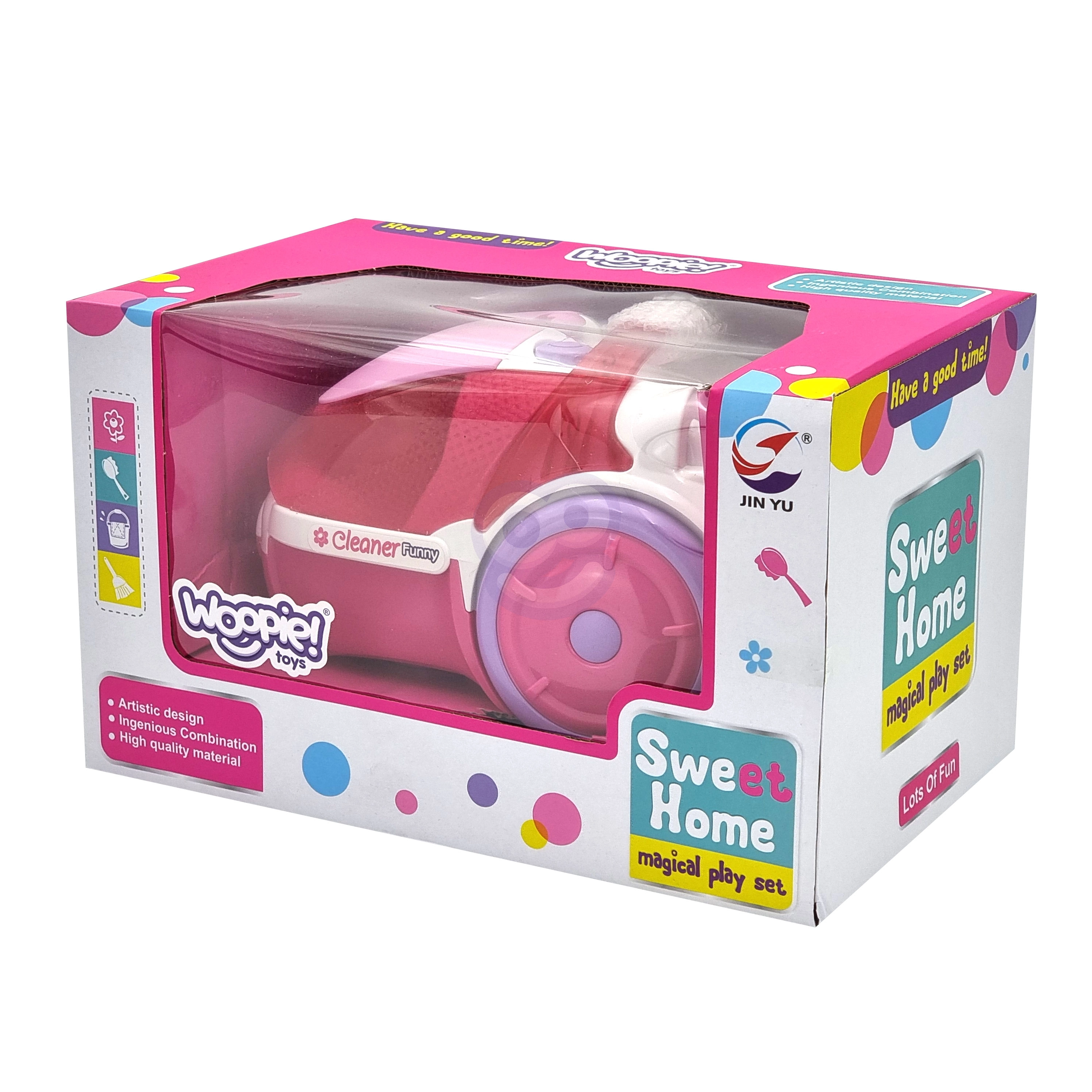 La divertida aspiradora infantil WOOPIE de color rosa con función real de succión y efectos de sonido convierte la limpieza en un juego. Gracias al depósito extraíble para las pequeñas partículas recogidas y a los materiales seguros, es ideal para pequeños ayudantes a partir de 3 años a los que les gusta imitar a los adultos.
