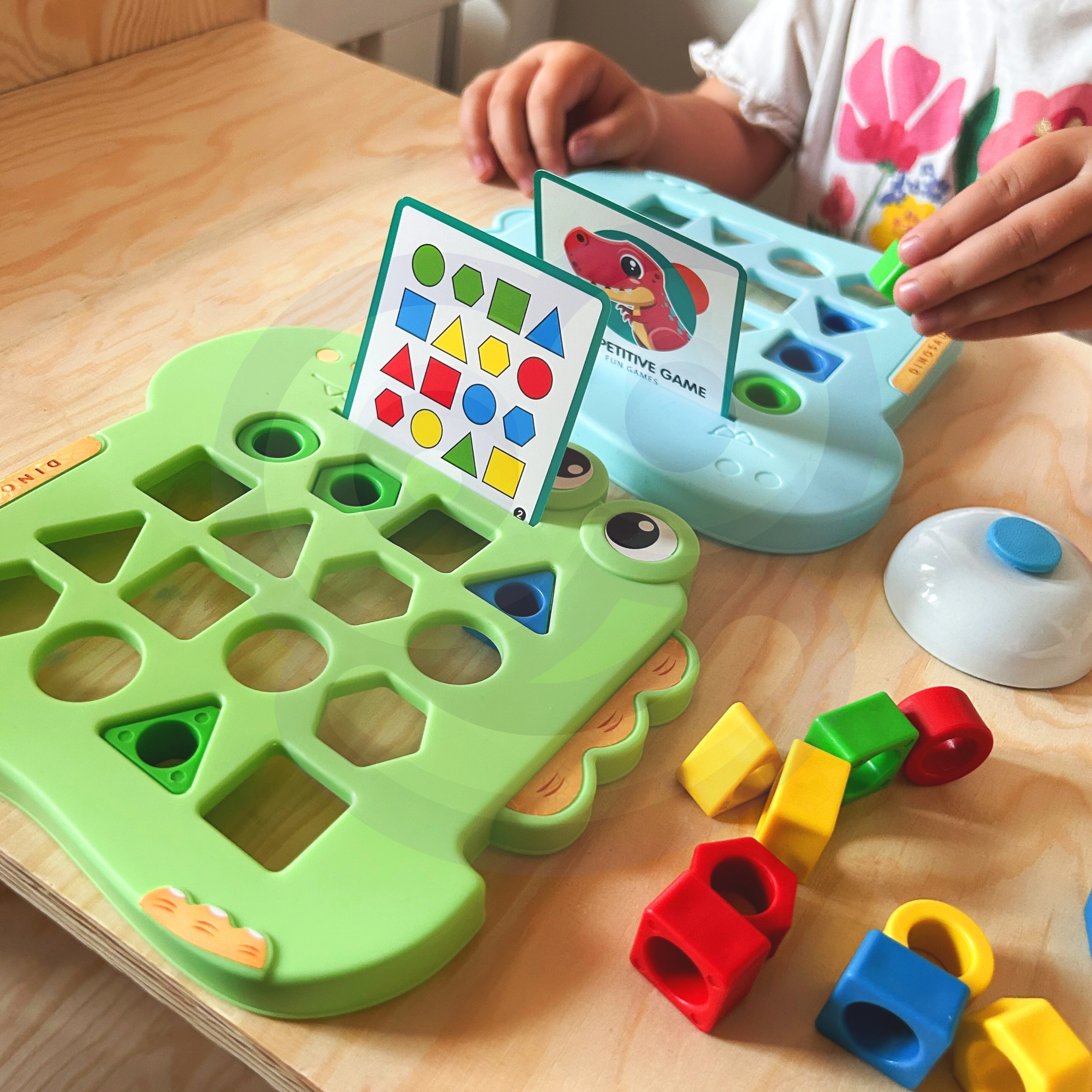 Descubre este juego Montessori, ingeniosamente diseñado con temática de dinosaurios, que ayuda a los niños a entrenar de forma lúdica el pensamiento lógico, la percepción de patrones y la rapidez de decisión. Gracias a las cartas con patrones, los niños pueden construir por sí solos siguiendo el modelo o competir para ver quién completa la tarea más rápido.