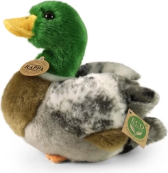 Este pato real de peluche destaca por sus colores realistas y su meticuloso acabado artesanal. El material aterciopelado es agradable al tacto y resistente para los mimos diarios. Gracias al relleno ecológico de botellas PET recicladas, disfrutarás del juego cuidando del planeta.