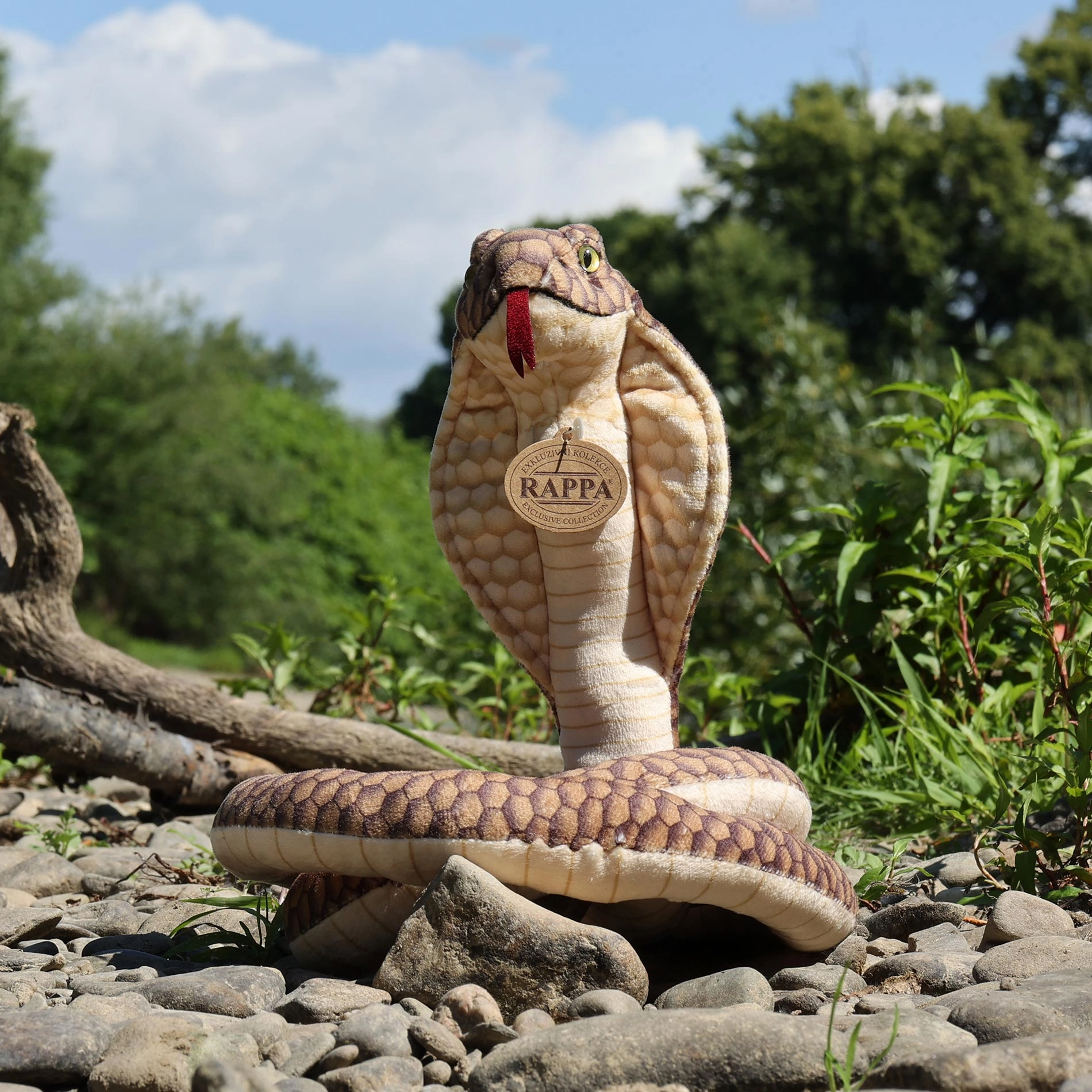 El patrón detallado, la “capucha” moldeada y la superficie aterciopelada convierten a la cobra en un compañero fiel y a la vez achuchable para niños y adultos.