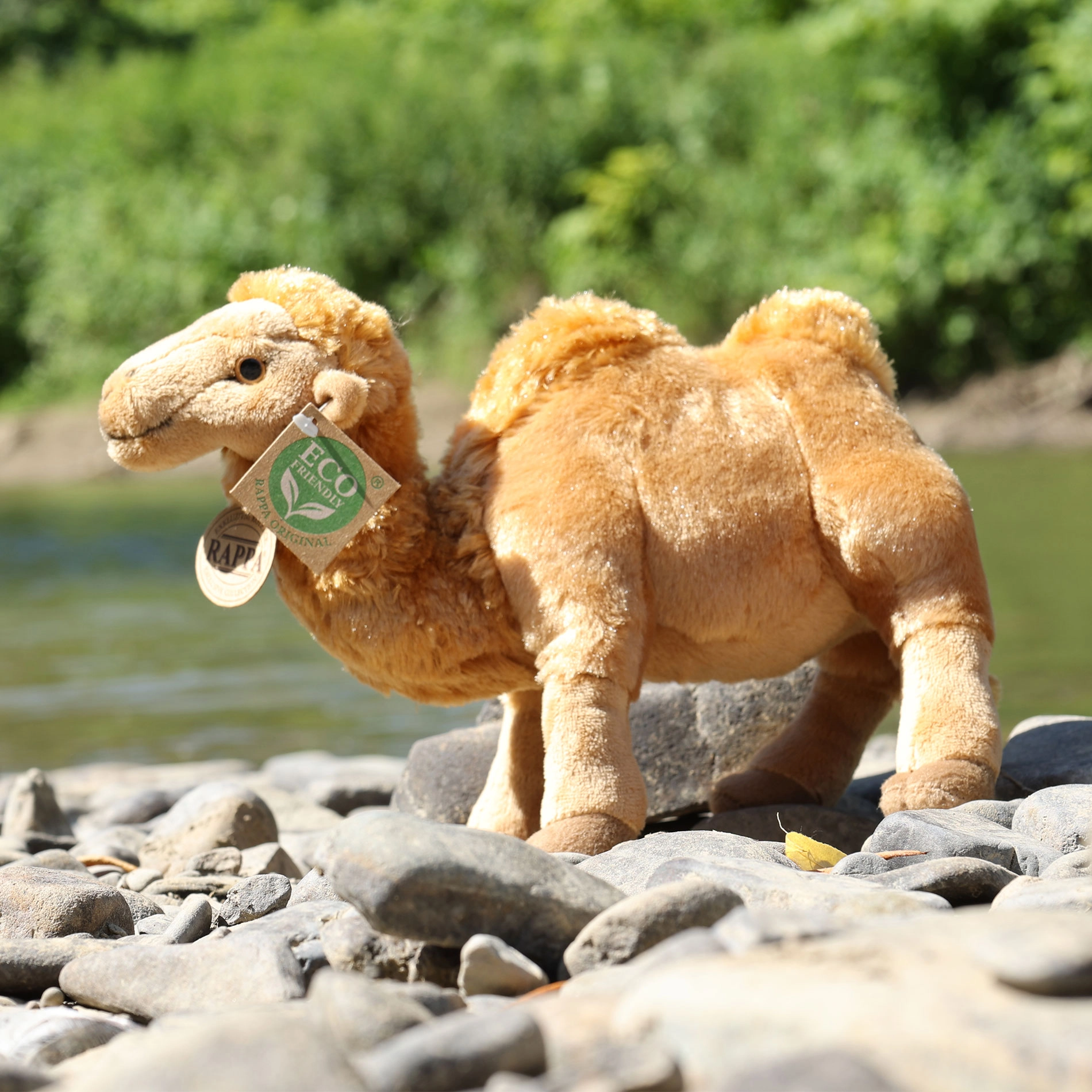 Adorable camello de peluche de 24 cm que encantará a niños y adultos. Está hecho de felpa de alta calidad, con acabado realista, costura a mano y relleno eco‑friendly de botellas PET recicladas. Su superficie suave invita a abrazarlo y forma parte de la colección exclusiva de la marca RAPPA.