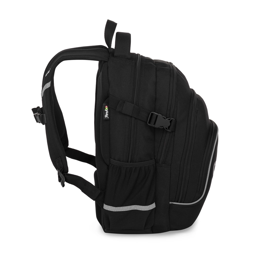 Mochila escolar ligera y espaciosa para 3.º curso y superiores con un volumen de 28 l y una capacidad de carga de 8 kg. Ofrece tres compartimentos, bolsillo para portátil, organizador, soporte para llaves/chip y bolsillo lateral para botella. Gracias a la espalda anatómica y transpirable, los tirantes ajustables y el cinturón de pecho, resulta cómoda incluso durante un uso prolongado. El fondo reforzado e impermeable y los elementos reflectantes garantizan protección y seguridad en el camino a la escuela.